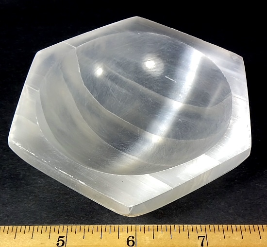 Selenite, also known as Satin Spar, Desert Rose and Gypsum Flower, is a variety of Crystalline Gypsum. Gypsum is a very soft mineral composed of Calcium Sulfate. Desert Roses are rosette shaped Gypsum with outer druze of sand or with sand throughout and often sand colored.