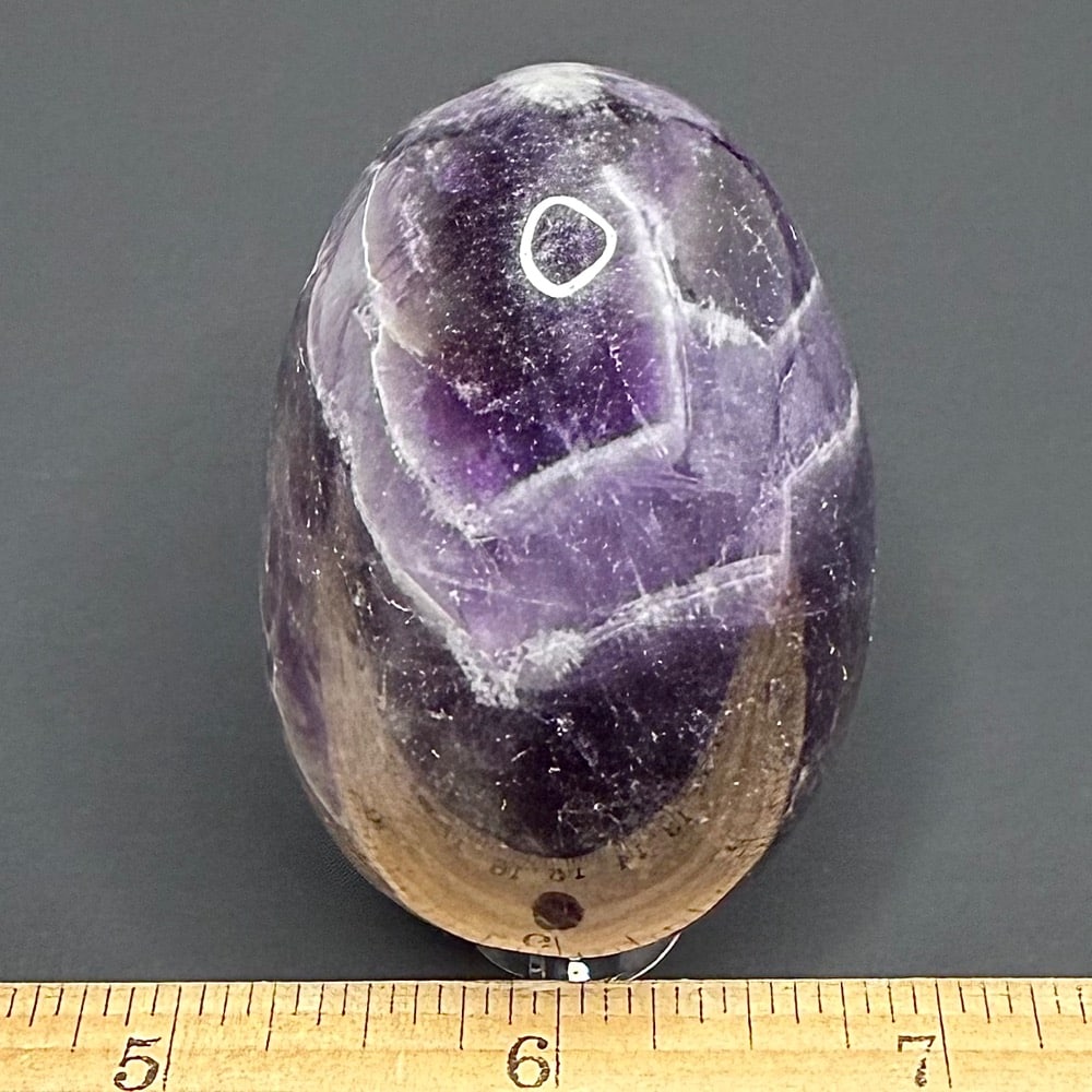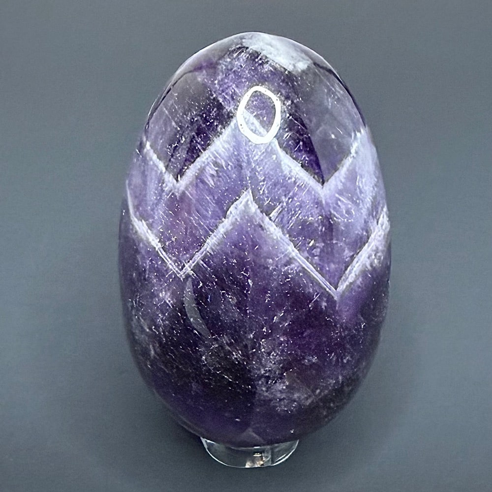 Chevron Amethyst, sometimes called Banded Amethyst is a combination of of Amethyst, Smokey and White Quartz mixed together in a banded pattern. Metaphysically-Banded Amethyst is said to combine the strengthening and enhancing qualities of Quartz with the stress relieving qualities of Amethyst.