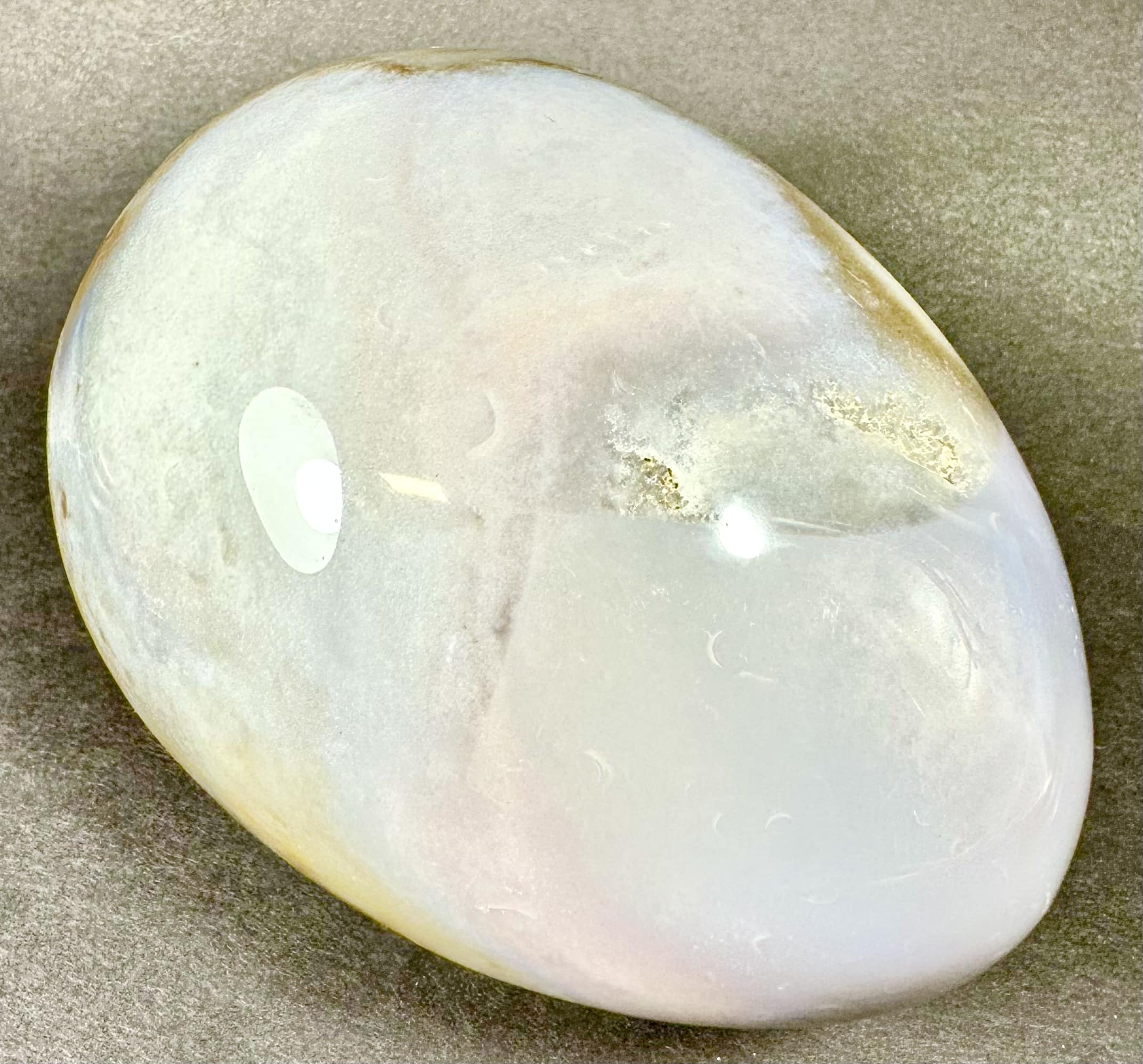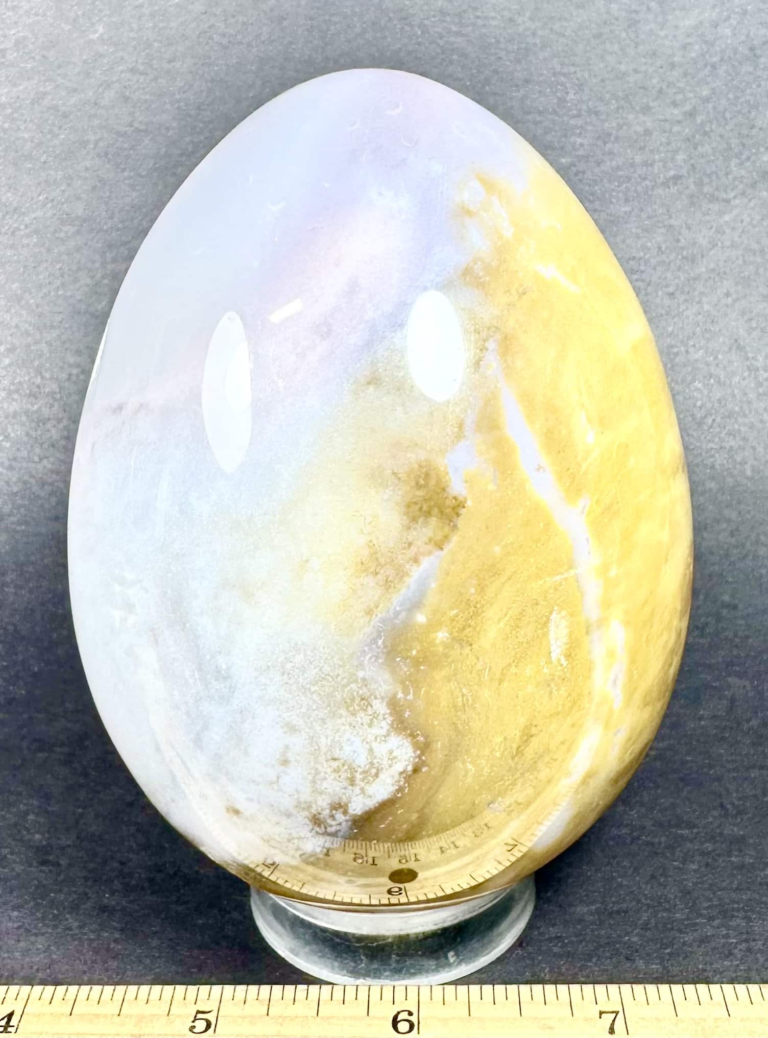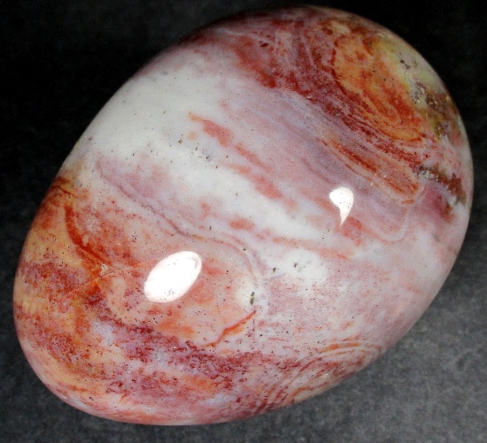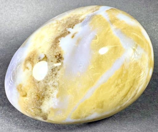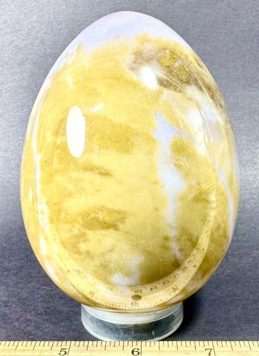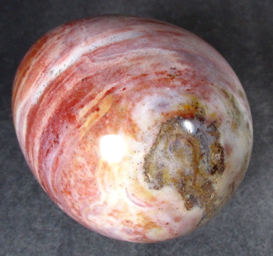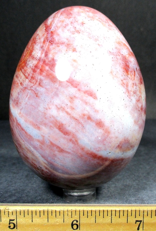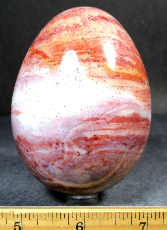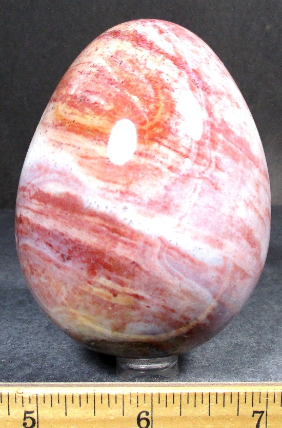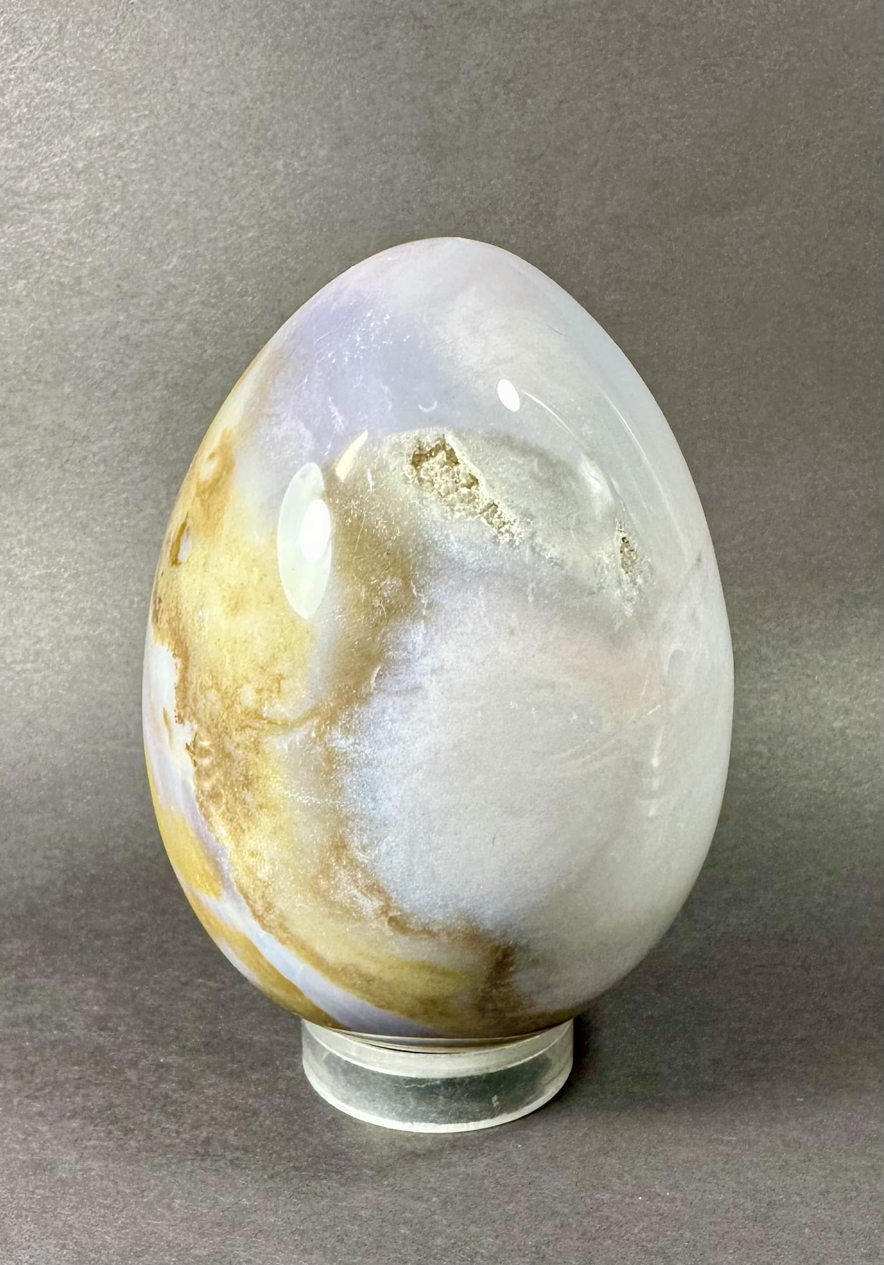 Egg105: Ice Cream Jasper– Locality: Madagascar. Selection: Polished. Appearance: This beautiful, one-of-a-kind egg has an interesting color scheme resembling delicious ice cream, surprising small crystal cavities and fascinating pattern.