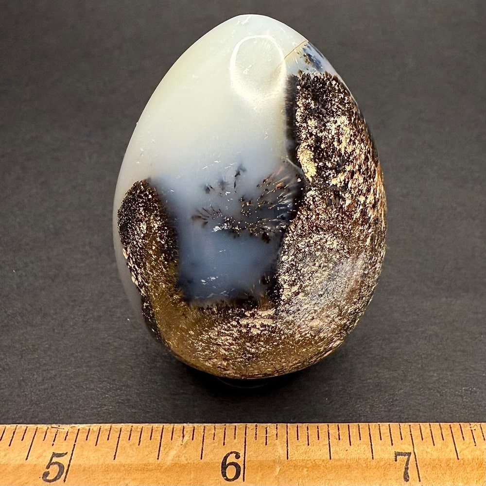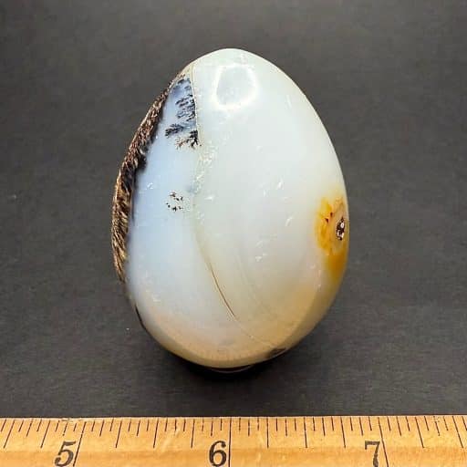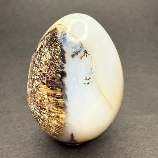 Agate from India comes in a variety of types in Blackskin, Whiteskin or Yellowskin. The most popular are those containing moss. Most of the moss agate, (called suabhaji), comes from the Bud-Kotra area in Morvi in the area around Khambat (“Camaby”) in Gujarat Province, India. They are usually found buried about 2 feet under the surface and must be dug up. When cut and finished they take an excellent polish. The agate is normally clear or clouded with inclusions of dark-green or red-brown moss.