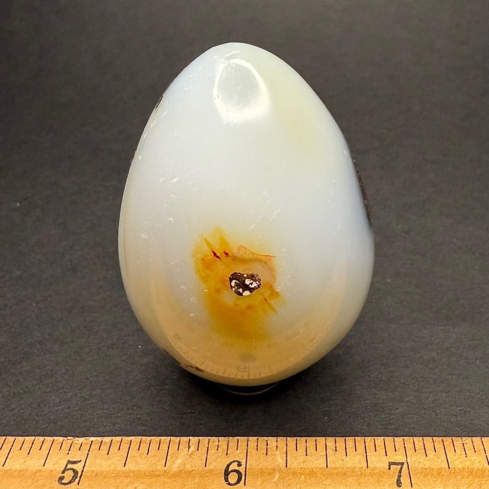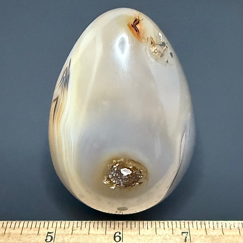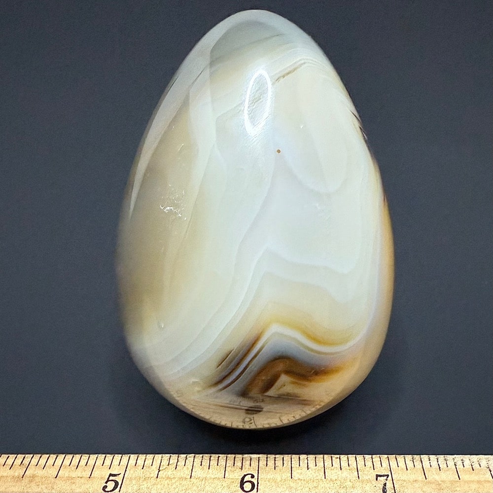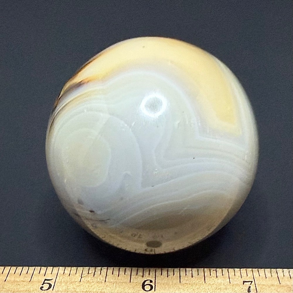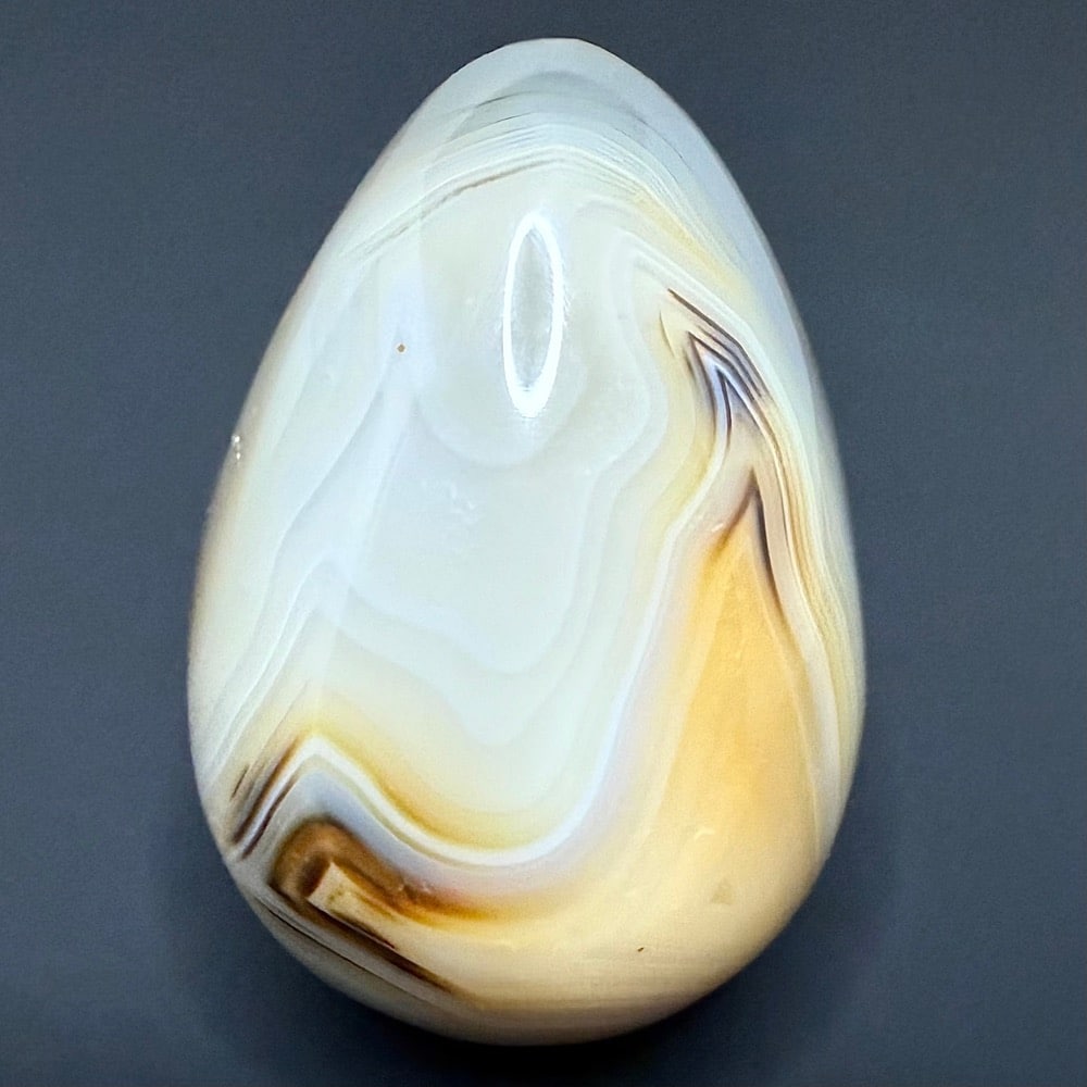 Agates mostly occur as nodules in volcanic rocks or waters containing silica in solution possibly derived from the decomposition of silicates in the lava. The siliceous matter is deposited in regular layers resulting in the banded or striped formation.