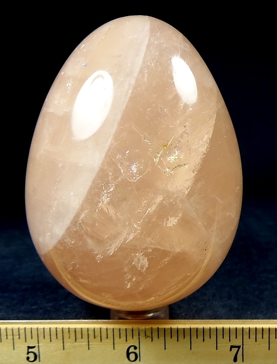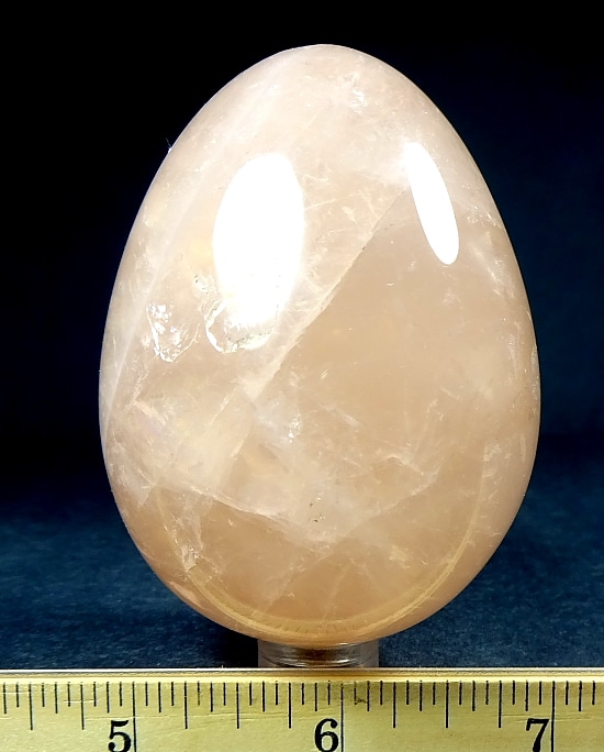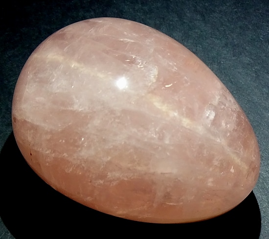 Here’s an exceptional “Star” Rose Quartz egg from Madagascar. It  has fabulous pink color,  excellent clarity, fantastic inclusions and mesmerizing single ray “star” that jump off the egg when rotated in bright light.  It’s quite difficult to capture the magnificence of the “star” but do take note of the last picture to give you an idea of what to look for. It  measures 2 7/8″ x 2 1/8″ and  has a good polish.  Very unique.