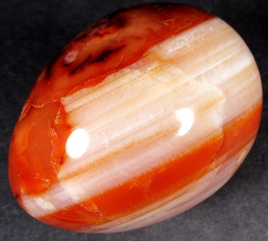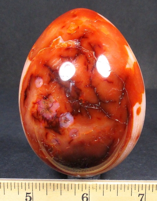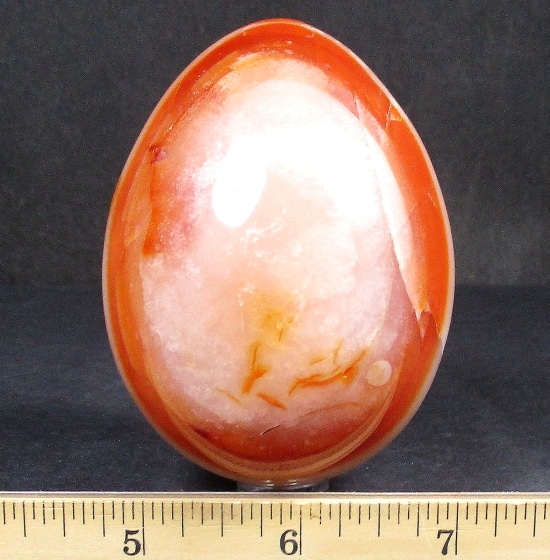 Here’s a neat item, an amazing Carnelian egg. This egg measures 2 7/8″ tall x 2 1/8″ and has a good polish. This egg has a great color with contrasting accents in a fabulous design. Great for any collection!