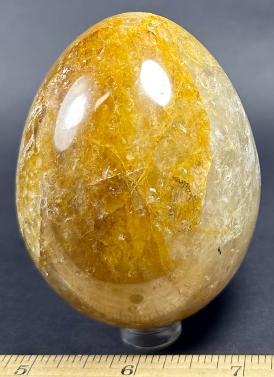 Egg305: Iron Quartz– Locality: Madagascar. Selection: Polished. Appearance: It has a nice polish which reveals the great color, good clarity, subtle “rainbow” reflections and awesome inclusions!