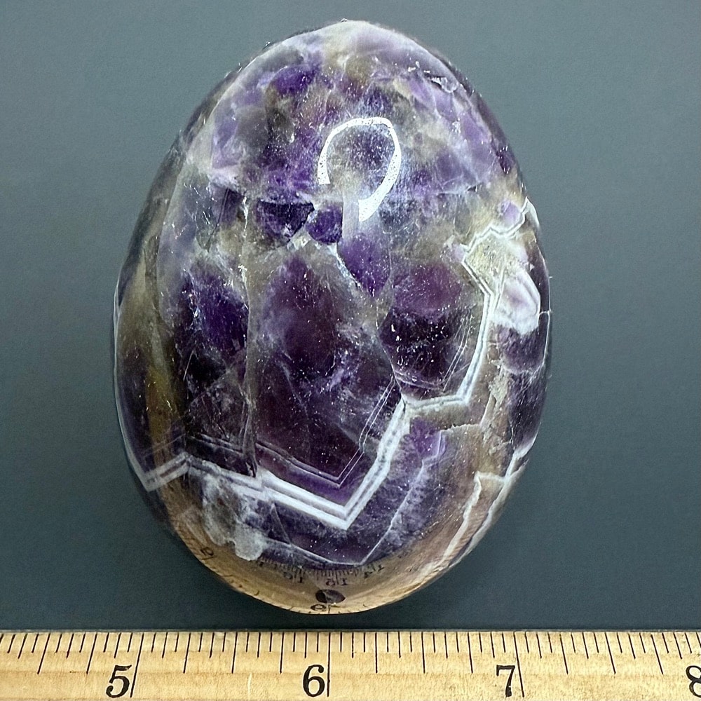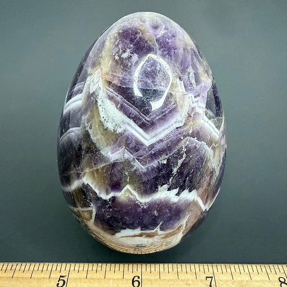 Chevron Amethyst is a unique blend of Amethyst and White Quartz. The White Quarts usually is seen in a Zigzag pattern. Amethyst is a purple variety of Quartz often used as an ornament. Upon exposure to heat, Amethyst generally becomes yellow, which some refer to as Citrine or “burnt” Amethyst. It occurs in color from a light, slightly pinkish violet to a deep grape purple. It is widely distributed as an ornamental stone, but fine, clear specimens that are suitable for cutting are used in jewelry. to a deep grape purple. It is widely distributed as a mineral, but fine, clear specimens that are suitable for cutting as ornamental stones.