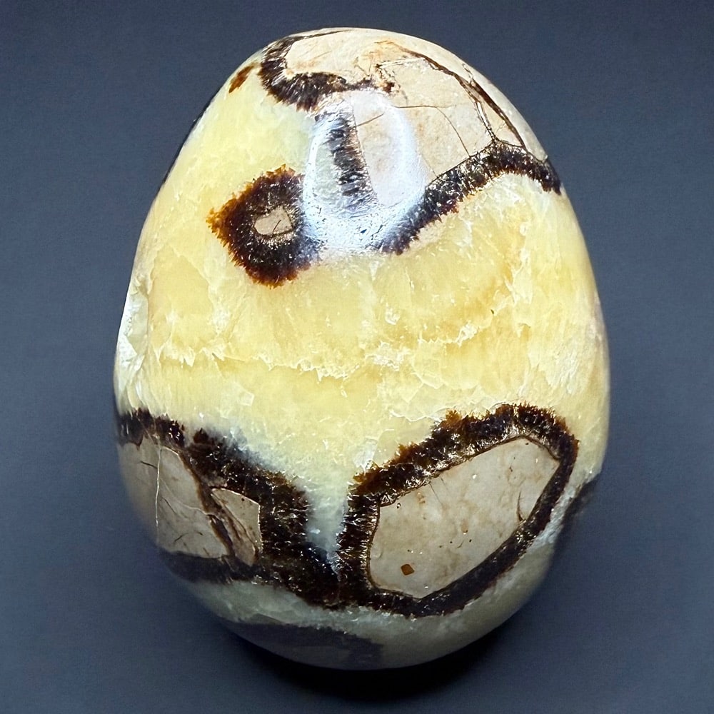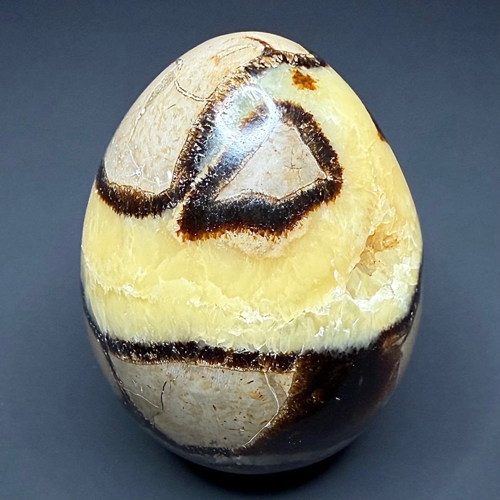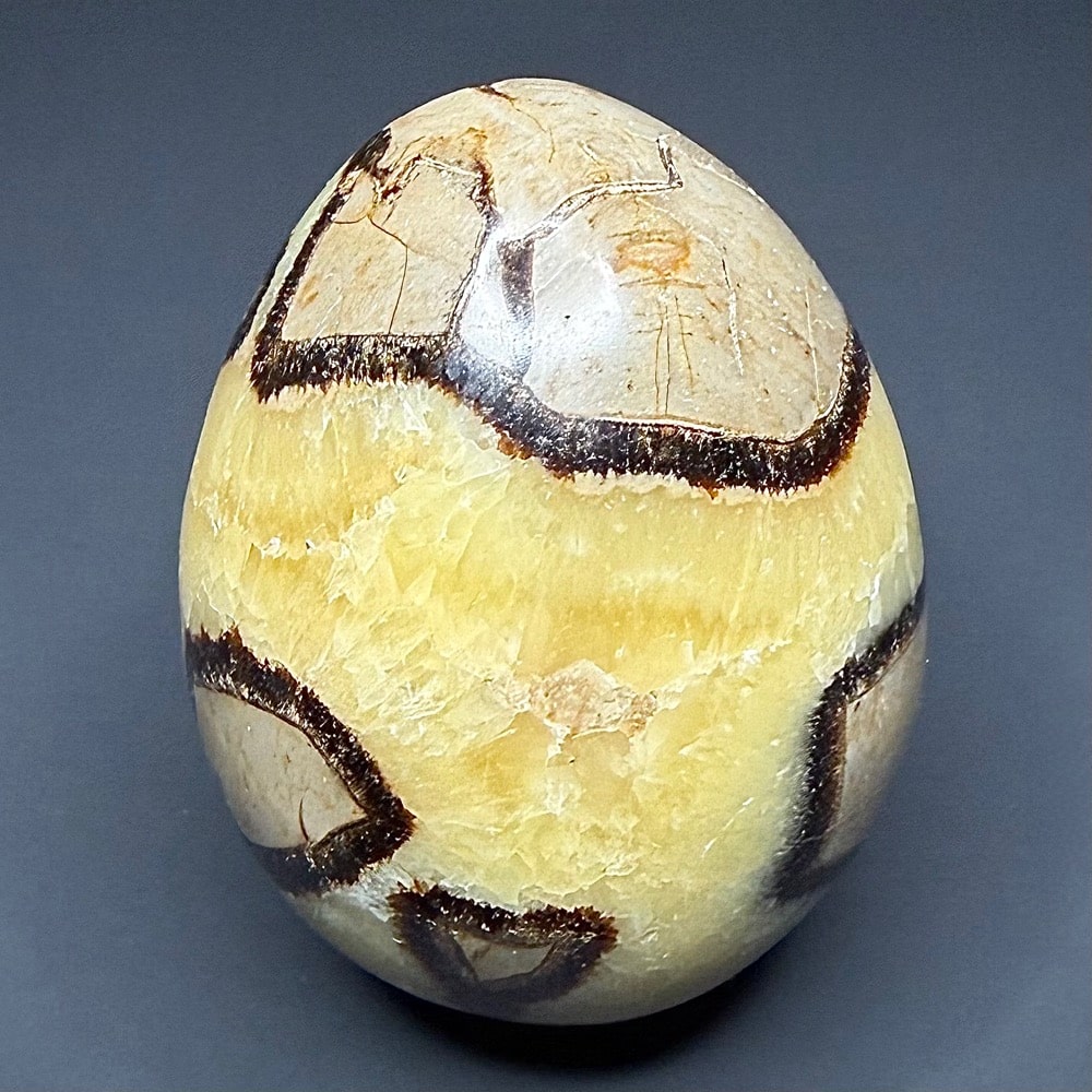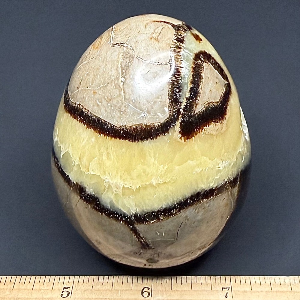 Septarian is also known as a type of concretion. It is a volume of sedimentary rock in which a mineral cement fills the porosity.  Concretions are often ovoid or spherical in shape.  They form within layers of sedimentary strata that has already been deposited.  It is composed of a Carbonate mineral such as Calcite, a Silica such as Chert, Flint or Jasper or an Iron Oxide such as Goethite or Hematite.  It is commonly found in Shale, Siltstones and Sandstones.