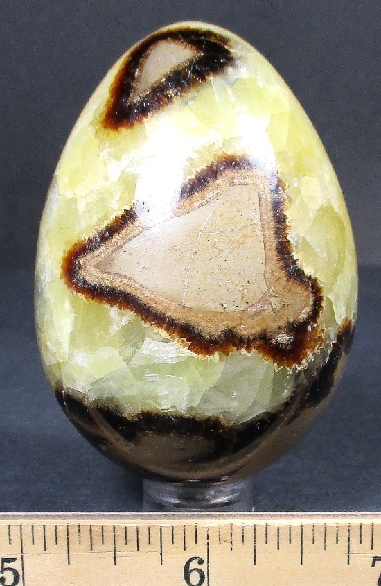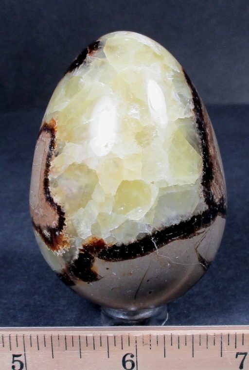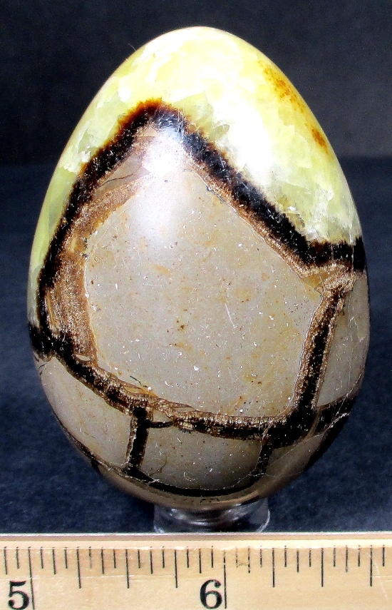 Septarian is also know as a type of concretion. It is a volume of sedimentary rock in which a mineral cement fills the porosity. Concretions are often ovoid or spherical in shape. They form within layers of sedimentary strata that has already been deposited. It is composed of a Carbonate mineral such as Calcite, a Silica such as Chert, Flint or Jasper or an Iron Oxide such as Goethite or Hematite. It is commonly found in Shale, Siltstones and Sandstones.