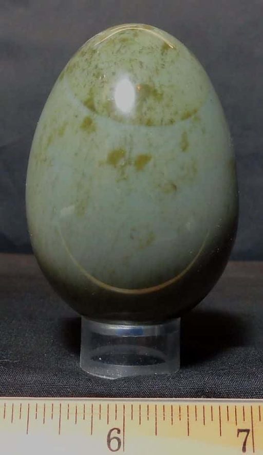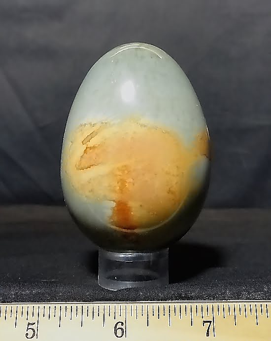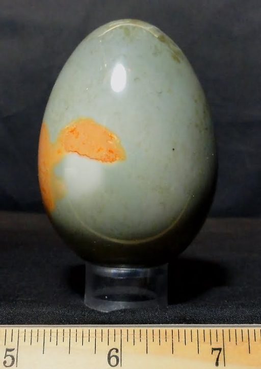 This is a very pretty, beautifully colored Poly-Chrome Jasper egg with a very neat design.  It measures nearly 3″ tall x over 2″ with a nice polish.  This egg  is made from material from Madagascar.