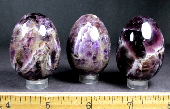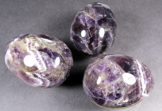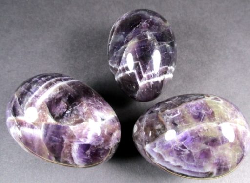 Chevron Amethyst is a unique blend of Amethyst and White Quartz. The White Quarts usually is seen in a Zigzag (or Chevron) pattern. Amethyst is a purple variety of Quartz often used as an ornament. Upon exposure to heat, Amethyst generally becomes yellow, which some refer to as Citrine or “burnt” Amethyst. It occurs in color from a light, slightly pinkish violet to a deep grape purple. It is widely distributed as an ornamental stone, but fine, clear specimens that are suitable for cutting are used in jewelry.