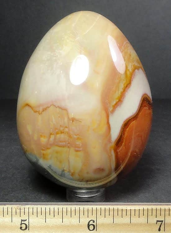 This is a very nice Poly Chrome Jasper egg from Madagascar. This large egg measures approximately 2 3/4″ x 2″. This beauty  has the fabulous mix of pastel and bold colors characteristic of Poly Chrome Jasper. Grab it quick!