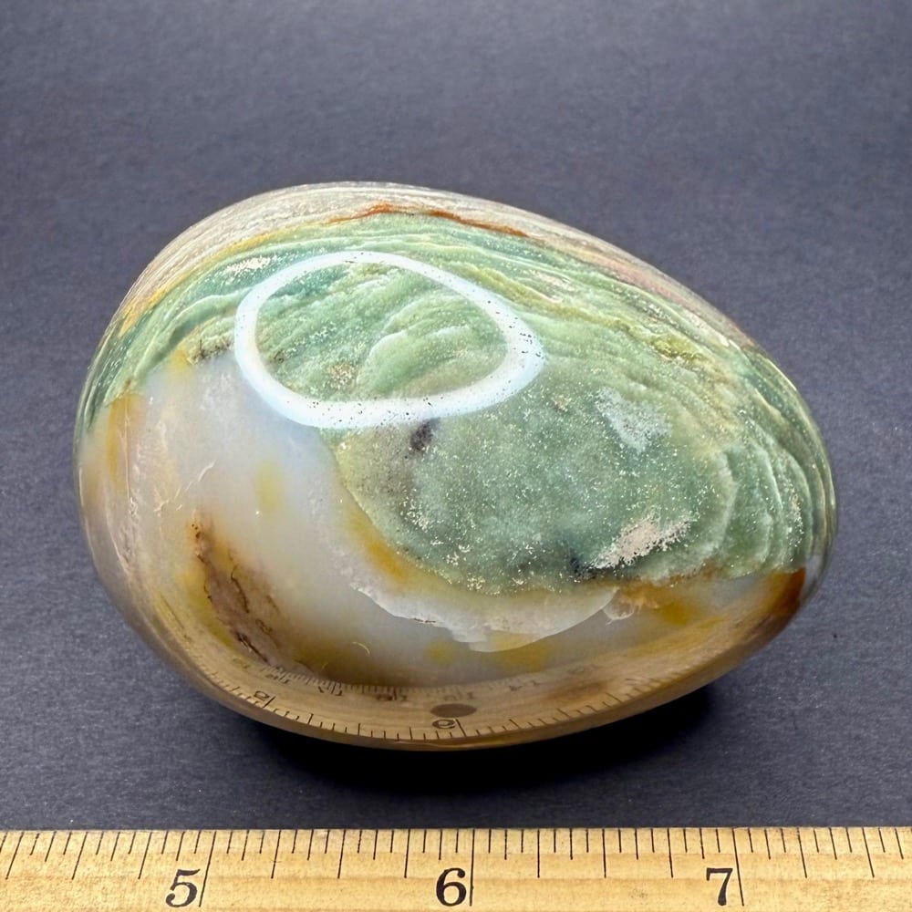 Jasper, or spotted stone, is an opaque, impure variety of Quartz that is usually red, yellow or brown in color. Picture Jaspers simultaneously exhibit several variants such as banding, flow patterns, dendrites or color variations. This results in what appears to be scenes or images in a cut section of the Jasper.