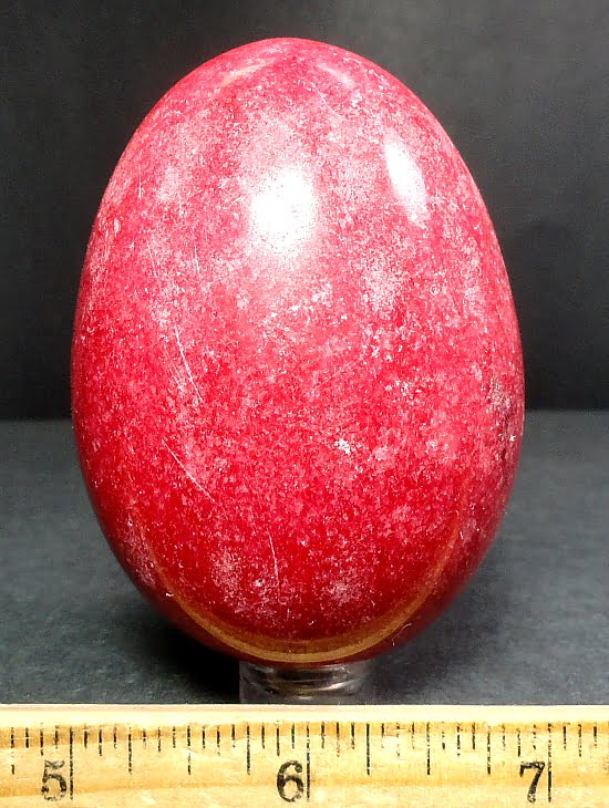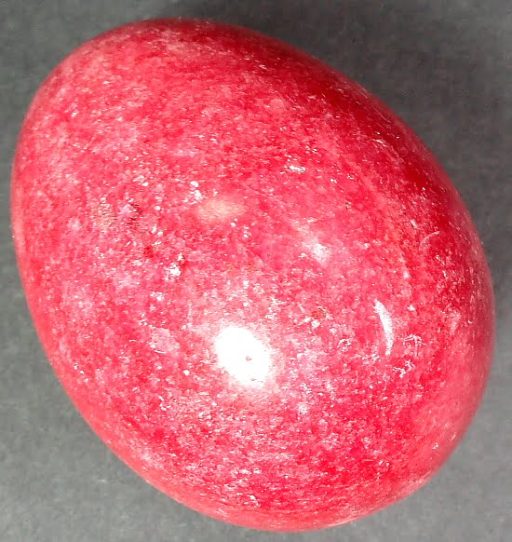 Here is something different for the egg collector.  This is a very nice, larger color-enhanced Red Marble egg.  It measures 2 3/4″ x nearly 1 3/4″ and has a nice polish.  These eggs are from a new batch of original, unique items from our last shopping trip.