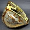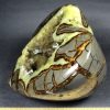 Appearance: Good combination of Yellow Calcite contrasting the Brown Aragonite in a nice design. UV fluorescent.