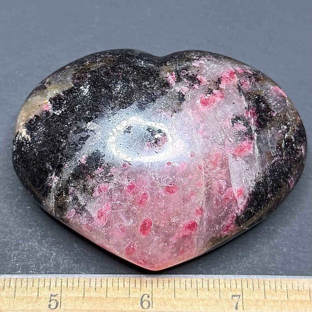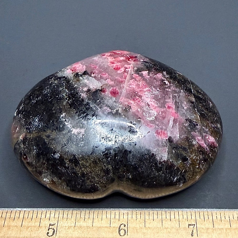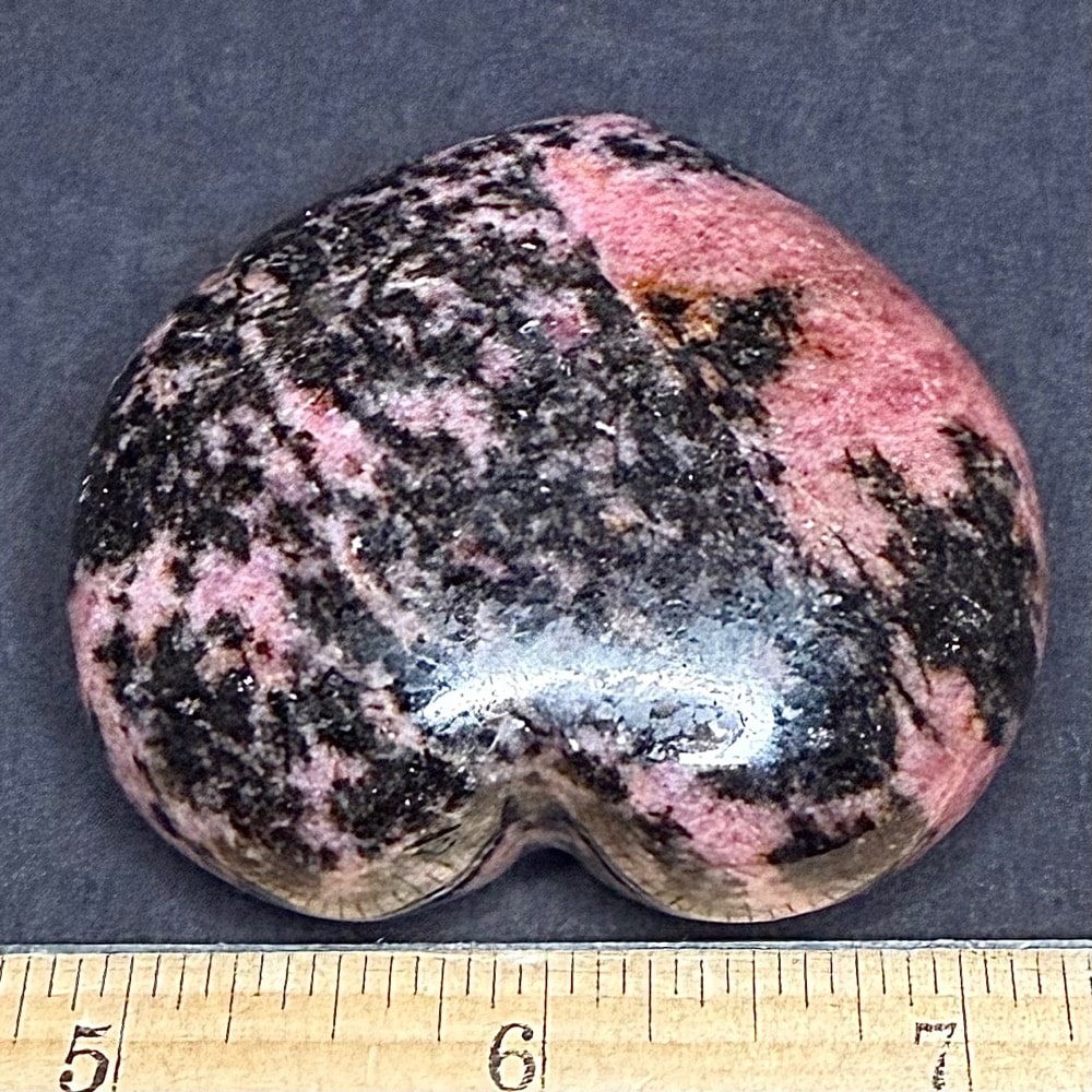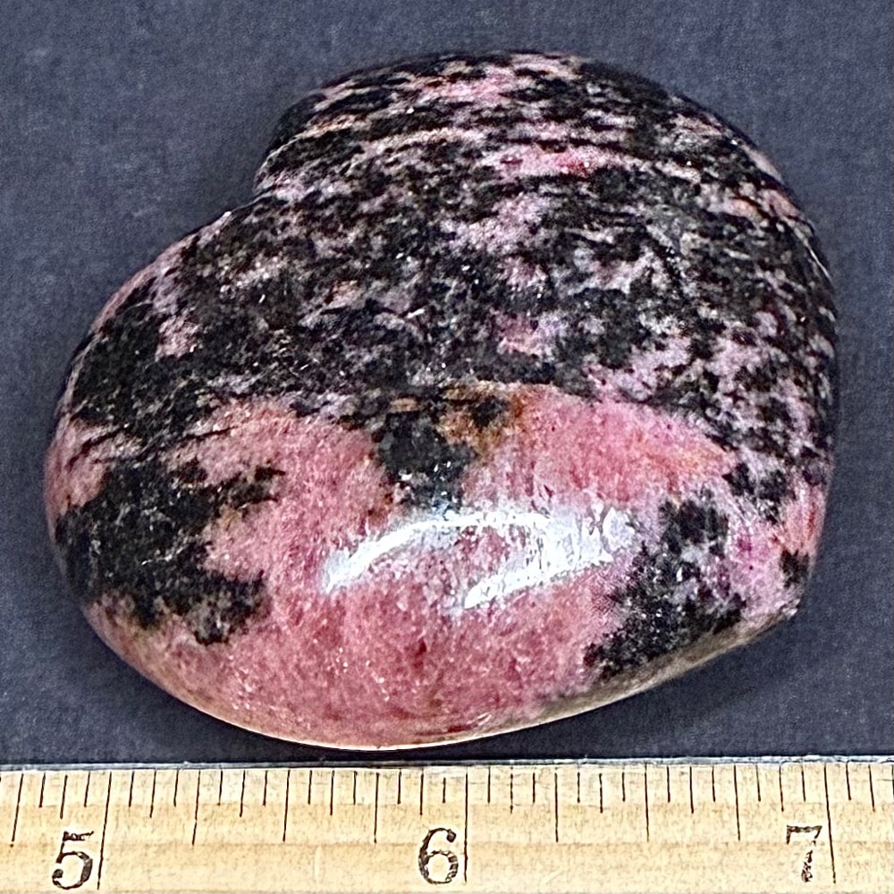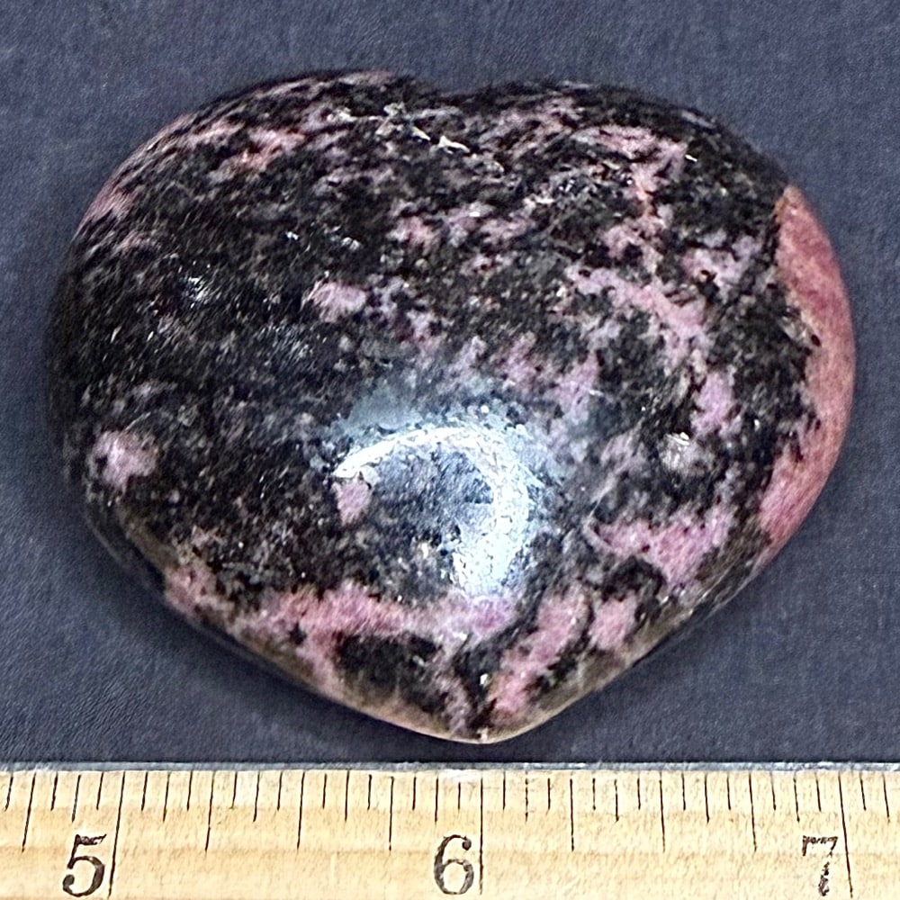 H116: Rhodonite Heart – Location: Australia Selection: Carved and polished.