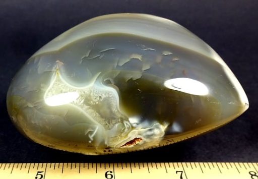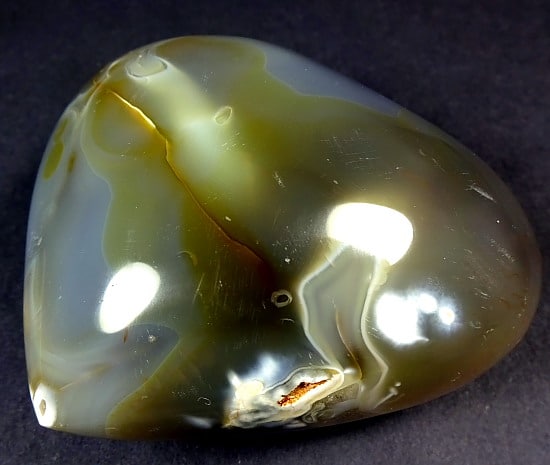 Agates mostly occur as nodules in volcanic rocks or waters containing silica in solution possibly derived from the decomposition of silicates in the lava. The siliceous matter is deposited in regular layers resulting in the banded or striped formation.