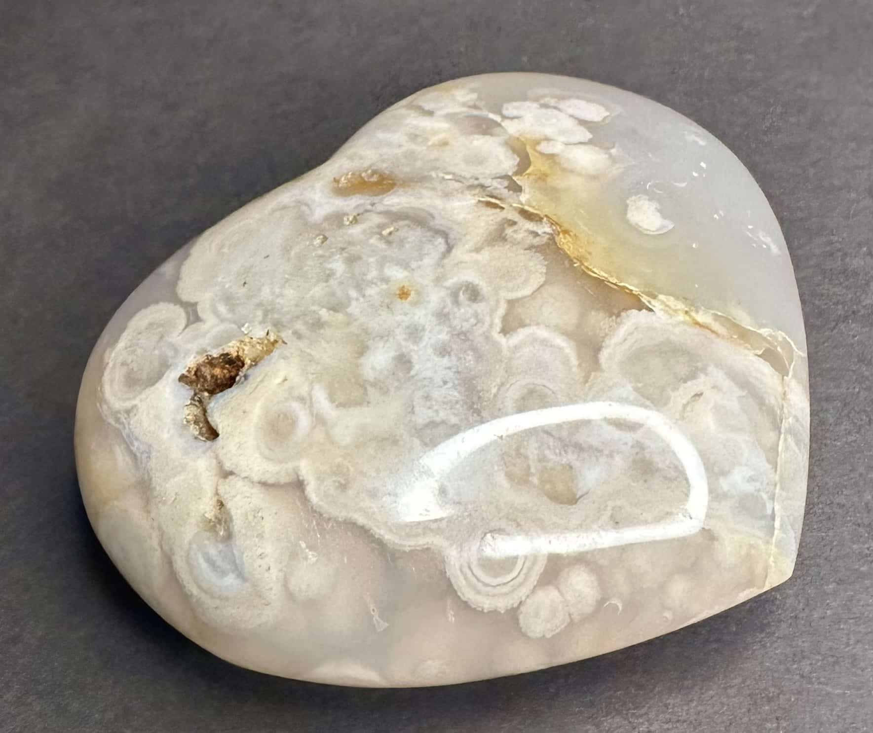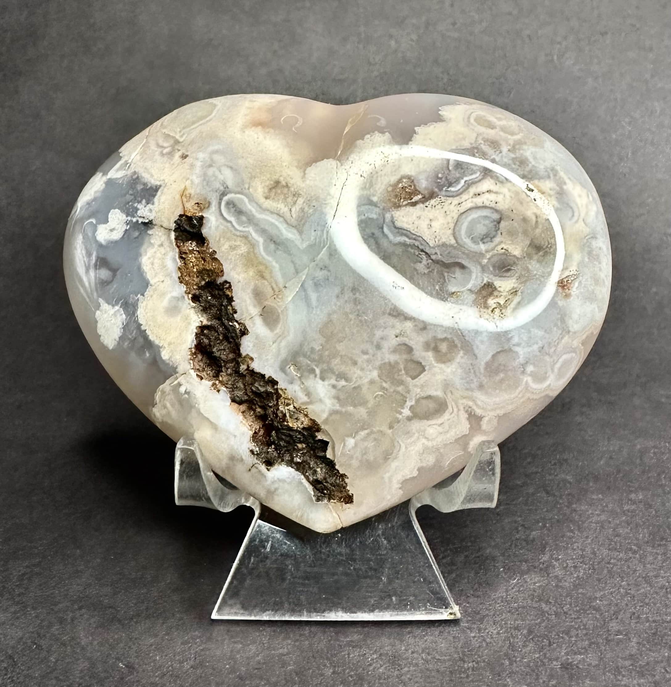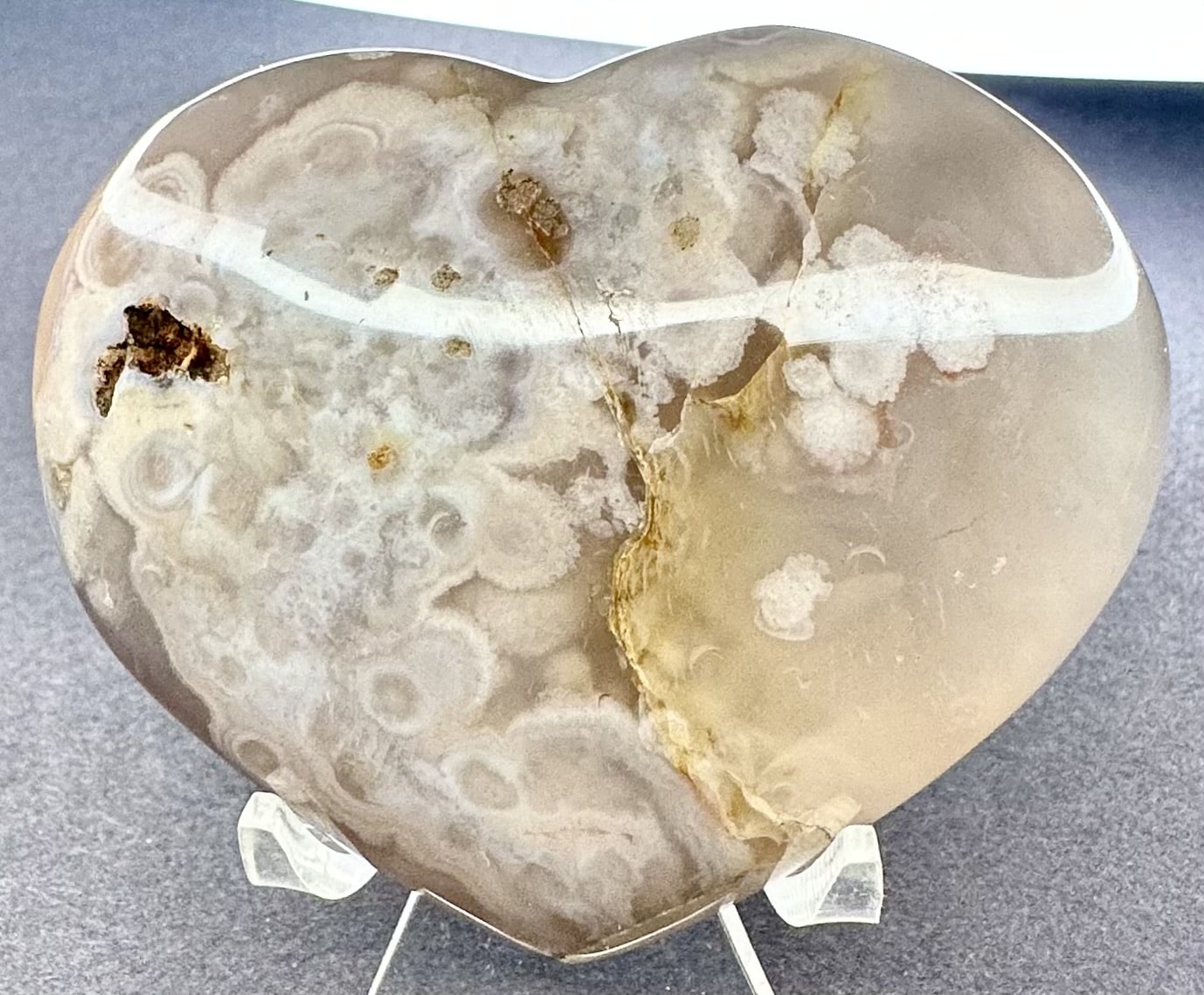 H202: Flower Agate Heart – Location: Madagascar Selection: Carved and polished.