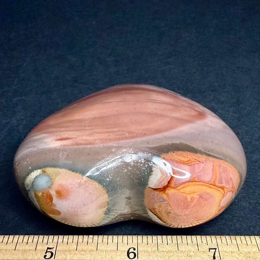 Appearance: It has a variety of bold and pastel colors in a design unique to Polychrome Jasper. High polish.