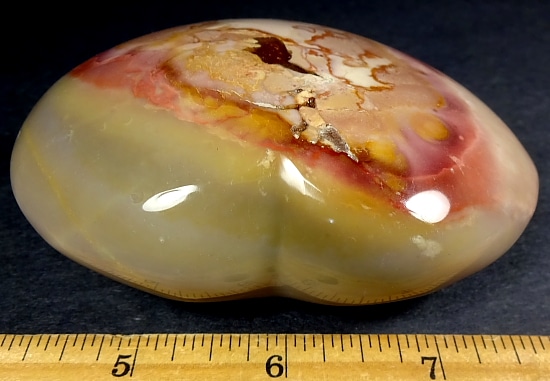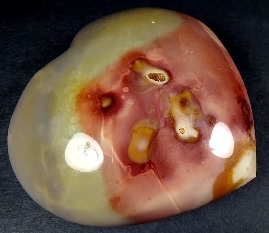 Jasper, or spotted stone, is an opaque, impure variety of Quartz that is usually red, yellow or brown in color. Picture Jaspers simultaneously exhibit several variants such as banding, flow patterns, dendrites or color variations. This results in what appears to be scenes or images in a cut section of the Jasper.
