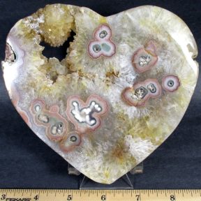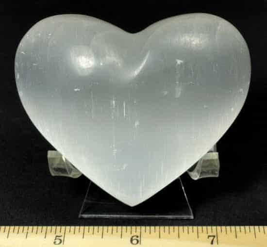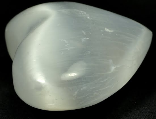 Here is a unique find!! This is an above average quality Selenite Heart from Morocco.  They measure approximately 3″ wide x 2 1/2″ tall x 1 1/4″ thick.  It has a beautiful polish and a neat changing sheen when moved in light.