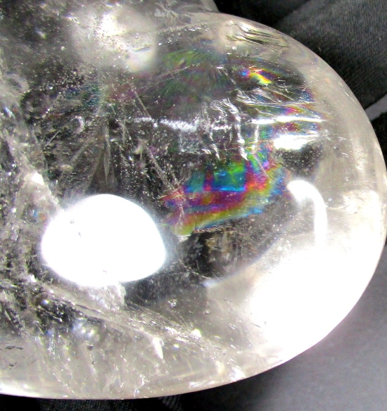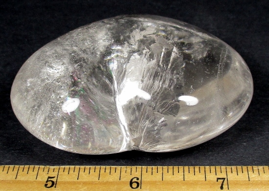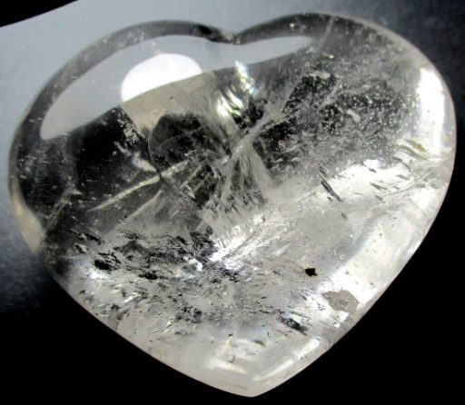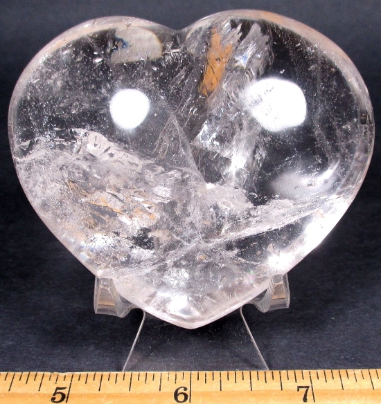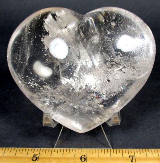 This is a pretty gemstone heart carved from Clear Quartz.  The lovely eye-catching heart measures 3″ wide x 2 1/2″ tall x 1 3/8″ thick.  It has a nice polish showing the inclusions with excellent clarity and brilliant “rainbow” reflections.  Something different for that special person or to add  to the collection.