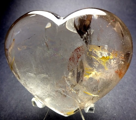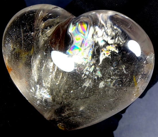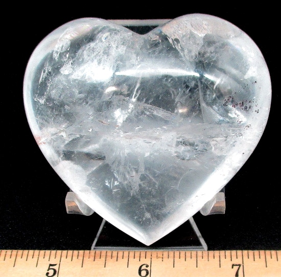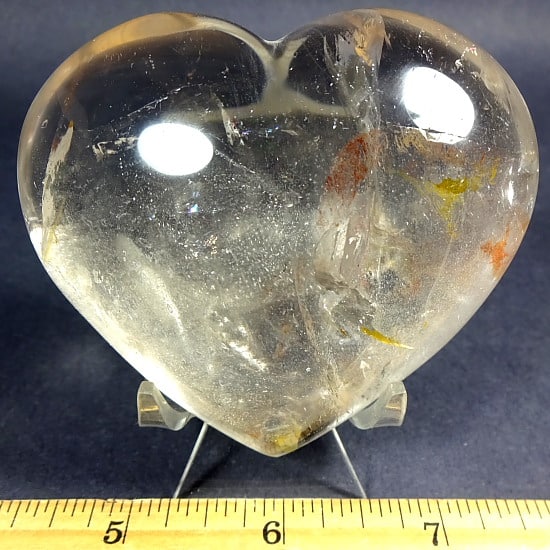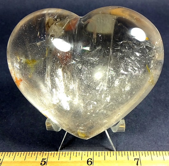 This is an exceptional Crystal Quartz Heart.  This heart has a beautiful polish, amazing clarity, “rainbow” reflections and gorgeous inclusions.  It measures 2 1/4″ wide x 2 1/8″ tall x 1 1/8″ thick.  Something different for that special person or to add to the collection.
