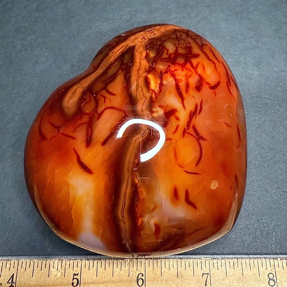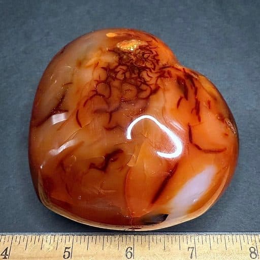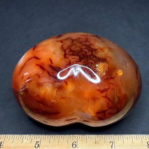 Carnelian is a red or reddish-brown variant of Chalcedony but also may come in the colors of orange and pink. It is quite common and usually found in translucent pebble form. It is found in several areas of Europe, Iceland and Madagascar.