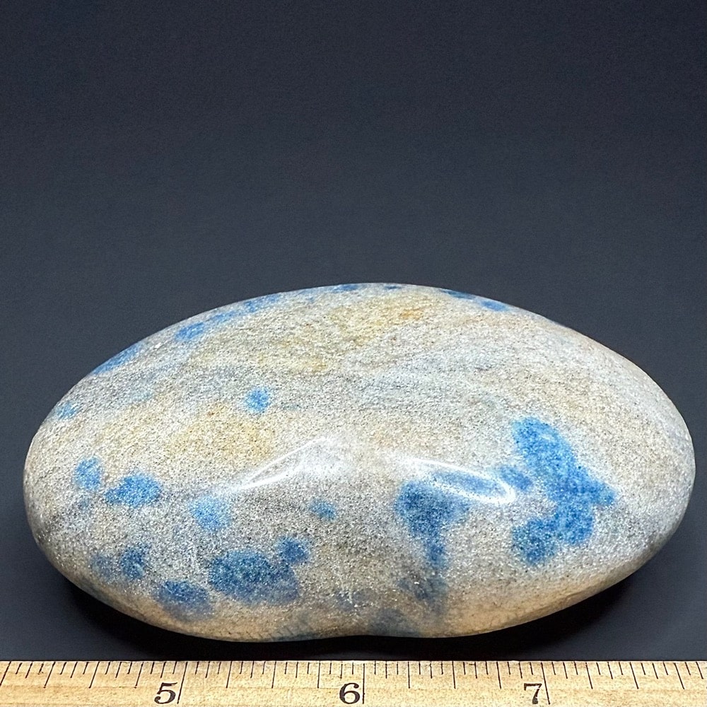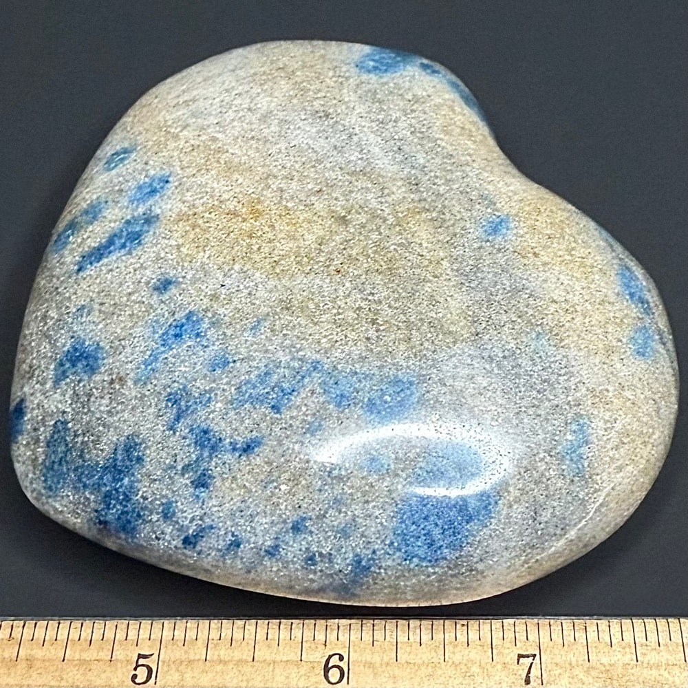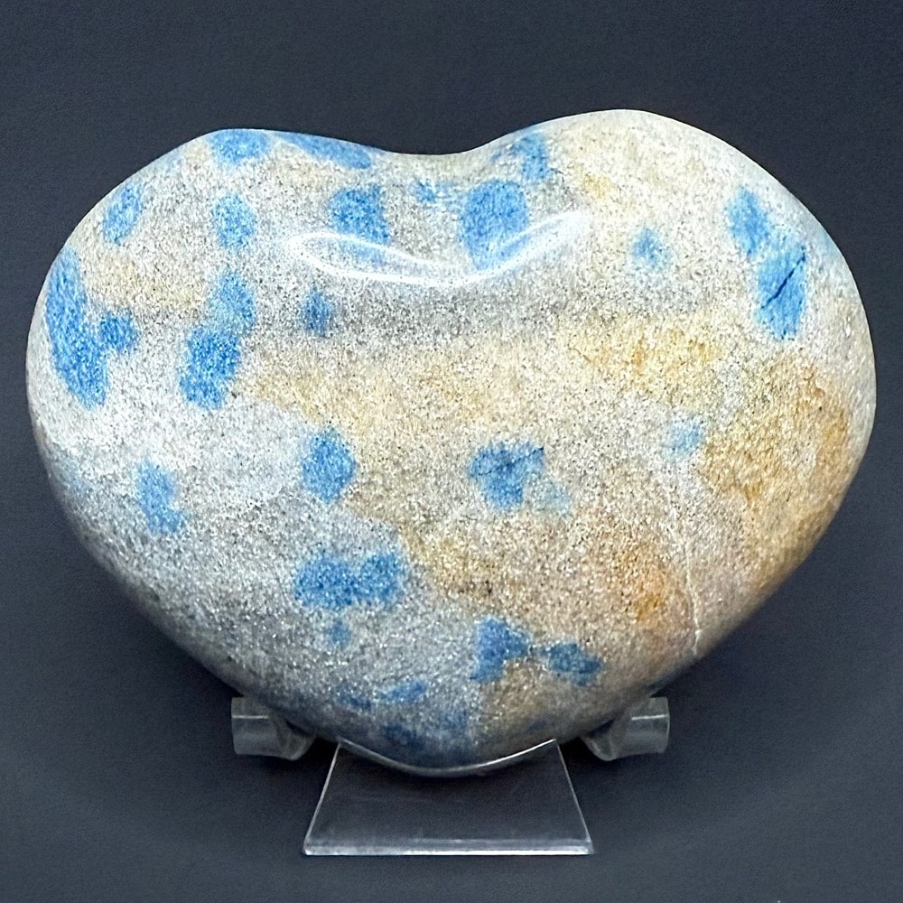 H320: Dumortierite in Quartz Heart –Location: Madagascar Selection: Carved and polished.
