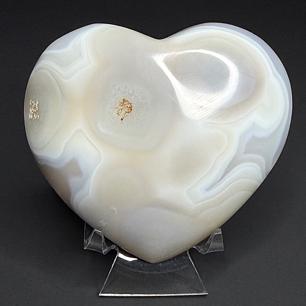 Agates mostly occur as nodules in volcanic rocks or waters containing Silica in solution which is possibly derived from the decomposition of Silicates in the lava. The Siliceous matter is deposited in regular layers resulting in the banded or striped formation. It is very unlikely that you would ever find an exact duplicate of any type of Agate.