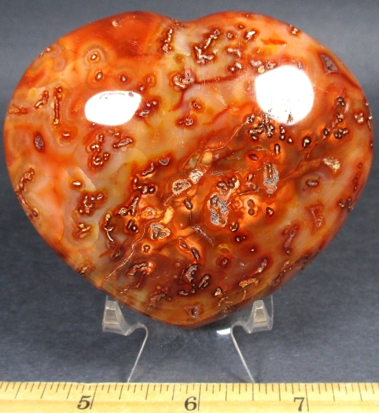 Carnelian is a red or reddish-brown variant of Chalcedony but also may come in the colors of orange and pink. It is quite common and usually found in translucent pebble form. It is found in several areas of Europe, Iceland and Madagascar.