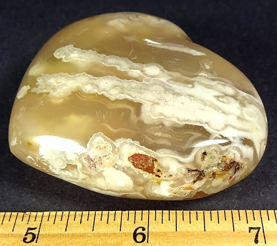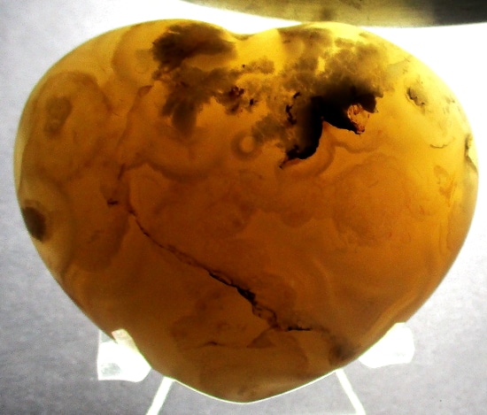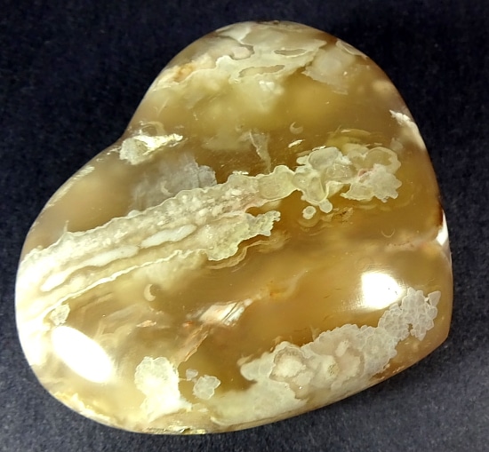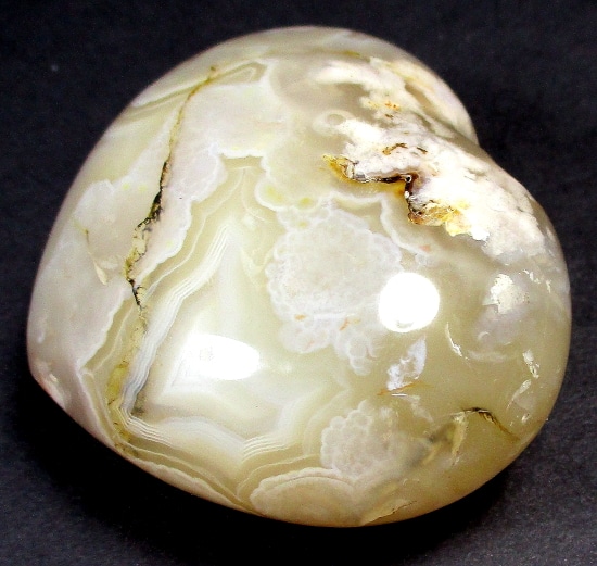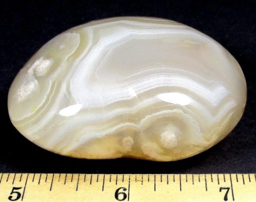 Agates mostly occur as nodules in volcanic rocks or waters containing silica in solution possibly derived from the decomposition of silicates in the lava. The siliceous matter is deposited in regular layers resulting in the banded or striped formation.