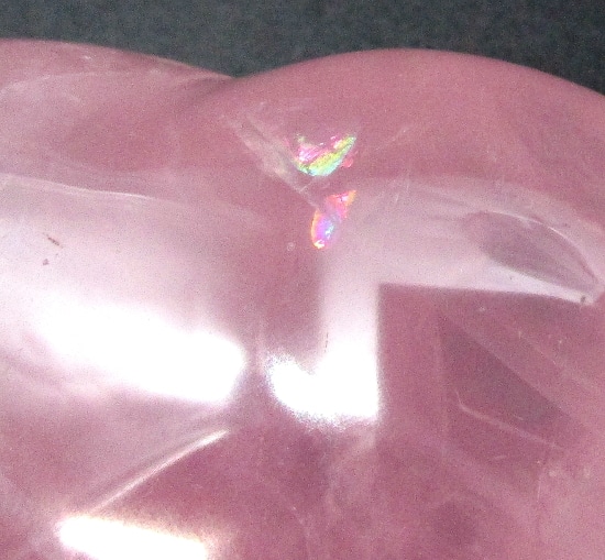Rose Quartz is a type of Quartz which exhibits a pale pink to rose red hue. The color is usually considered as due to trace amounts of Titanium, Iron or Manganese, in the massive material. Some Rose Quartz contains microscopic Rutile needles which produce an asterism in transmitted light.