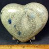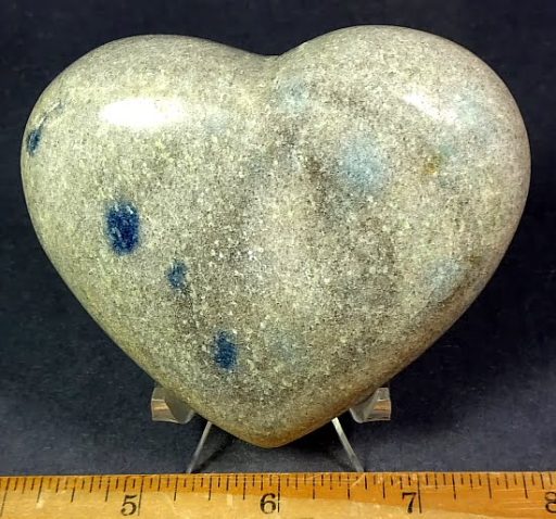 Here’s a cool new item,  Dumortierite in Quartz carved into a lovely heart.  This nicely polished piece measures 3 1/4″ wide x 3″ x 1 3/8″ tall with a great polish.  It has a good color scheme in a very nice design.  This unique heart would make a great  gift or nice addition to any collection.