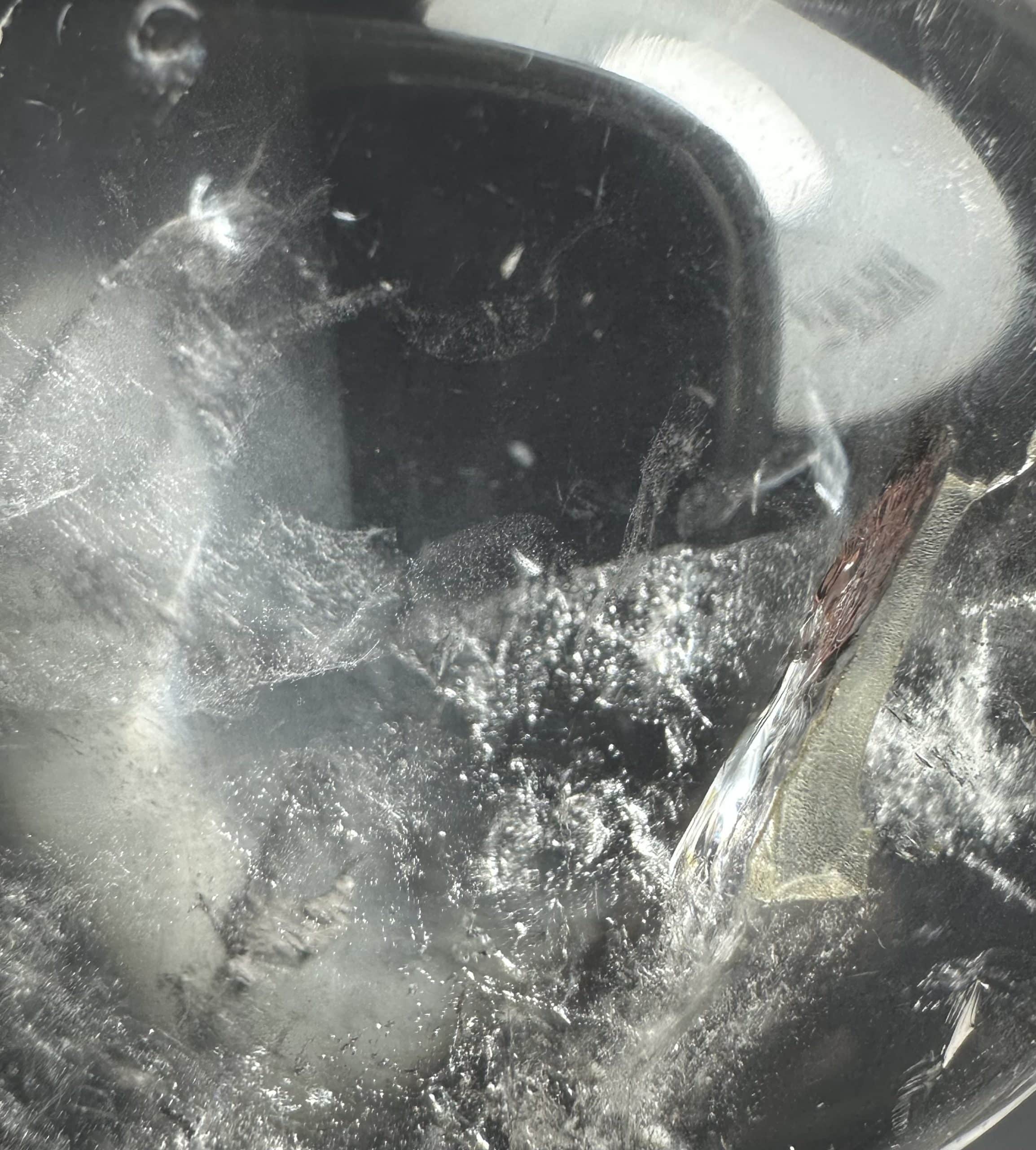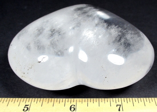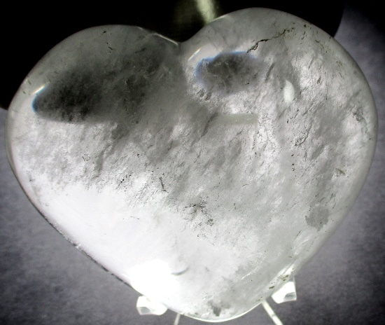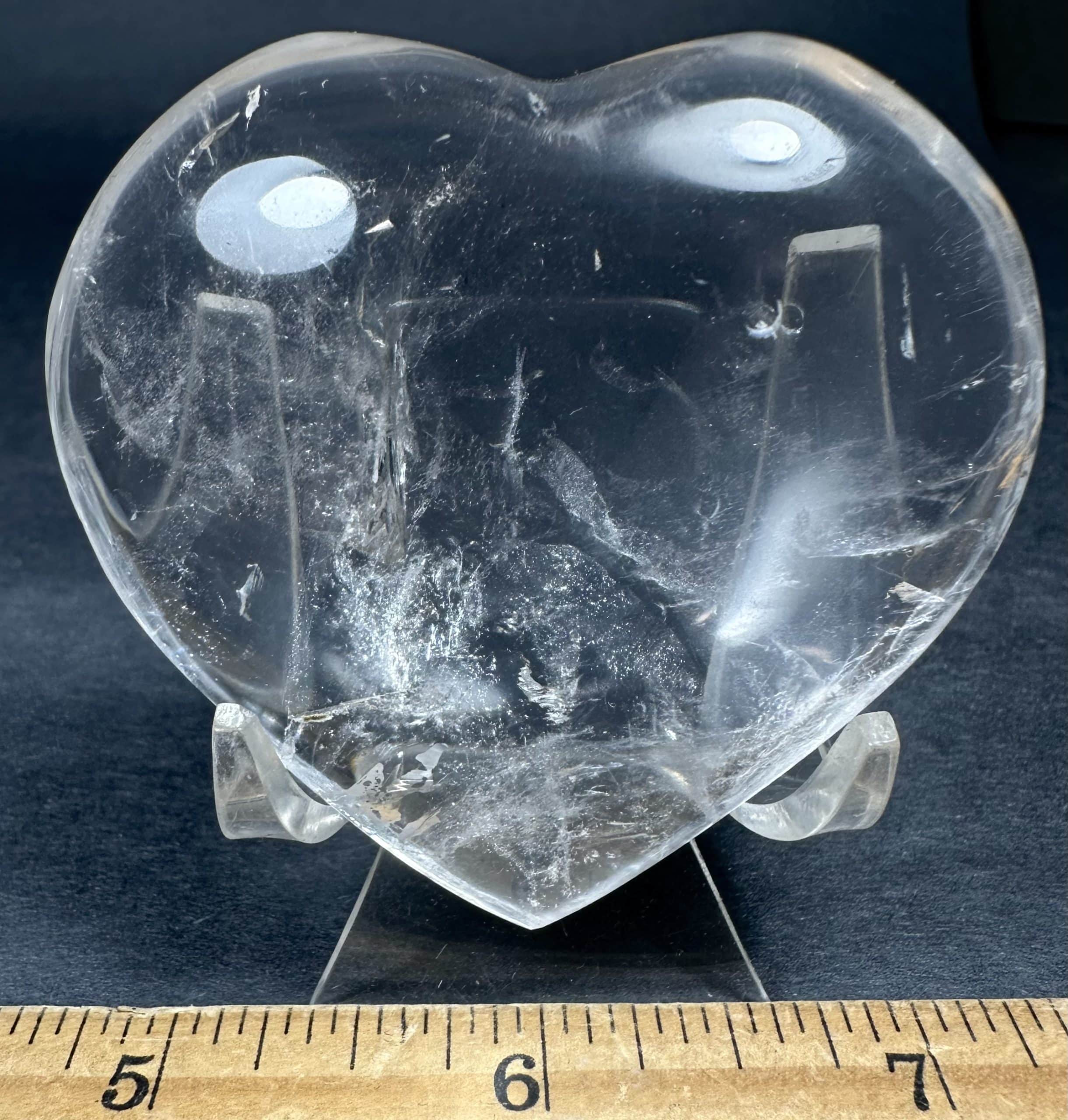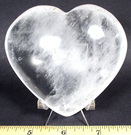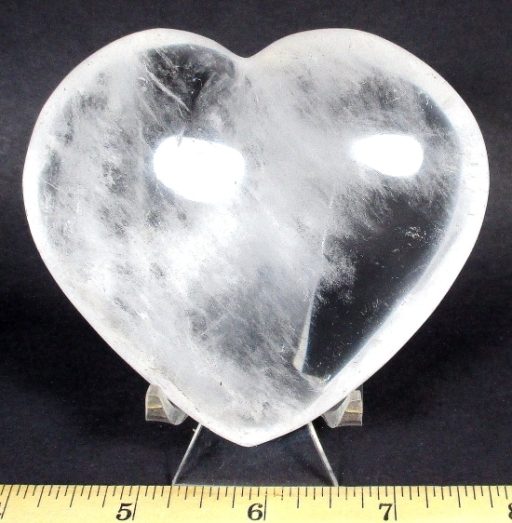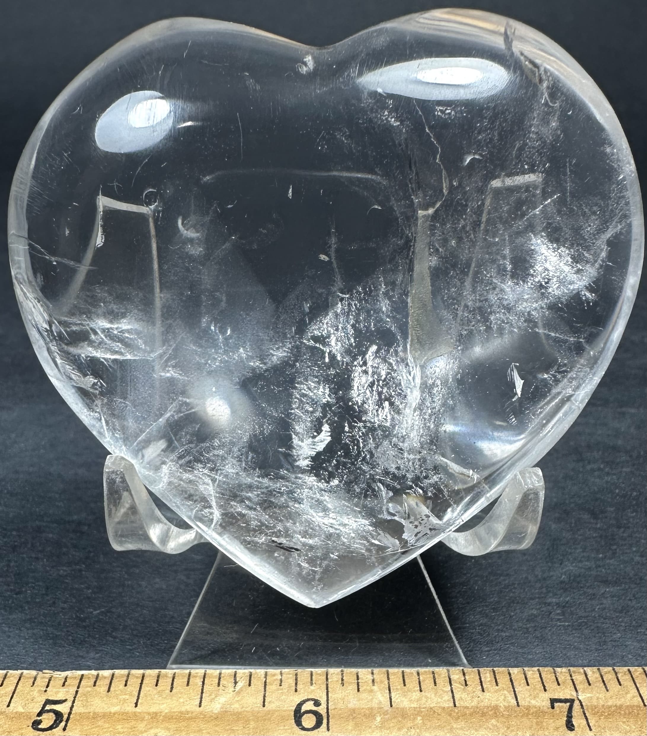 This is an exceptional heart carved from Crystal Quartz.  It measures 3 1/2″ wide x 3 1/4″ tall x 1 3/8″ thick and has a good polish. It has fabulous clarity, amazing inclusions and great design. This unique heart would make a super gift or dress up any heart collection.