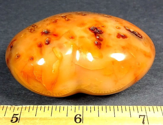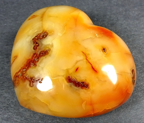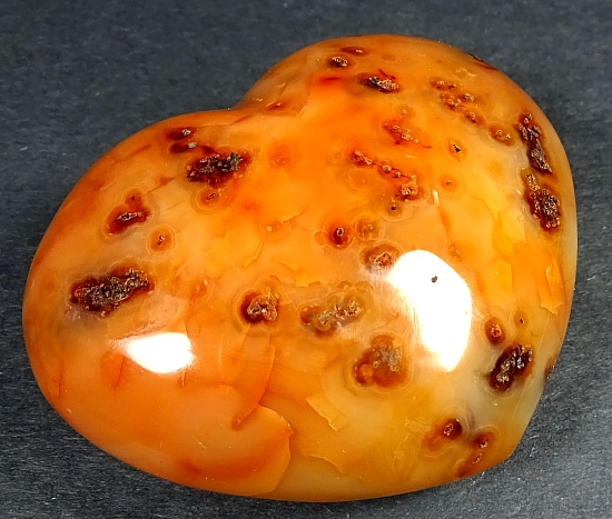 Carnelian is a red or reddish-brown variant of Chalcedony but also may come in the colors of orange and pink. It is quite common and usually found in translucent pebble form. It is found in several areas of Europe, Iceland and Madagascar.