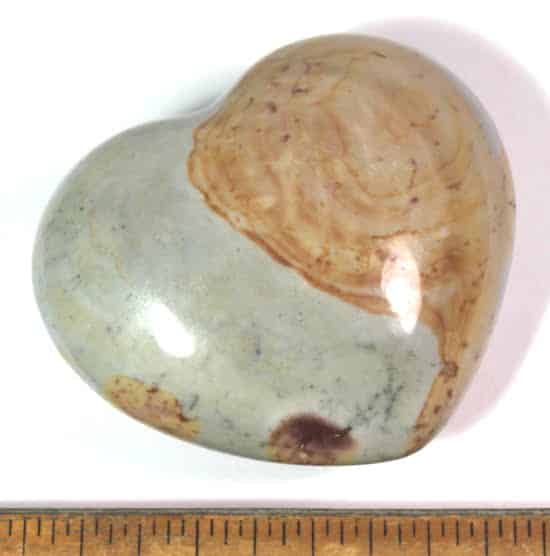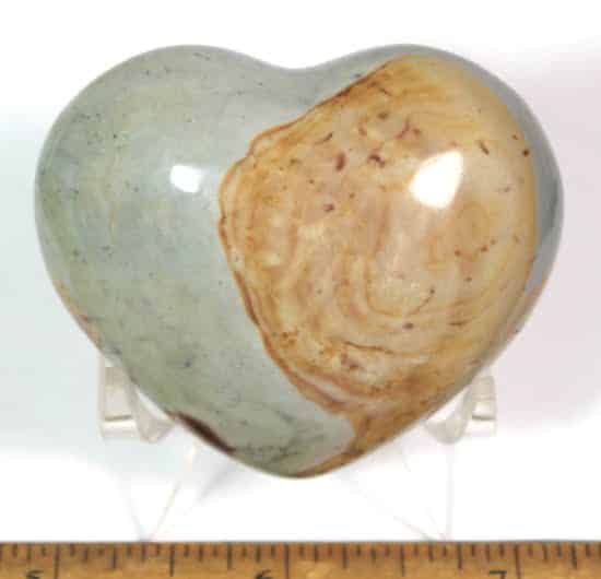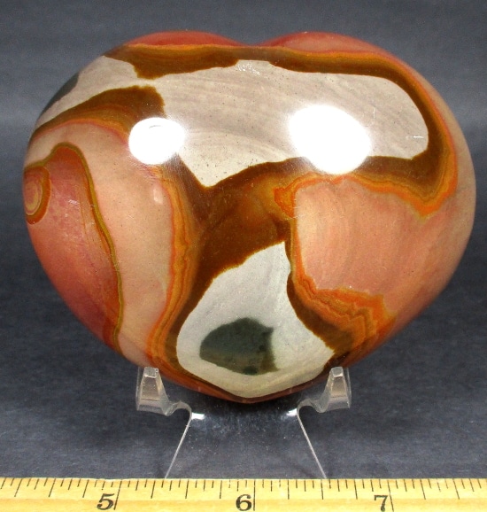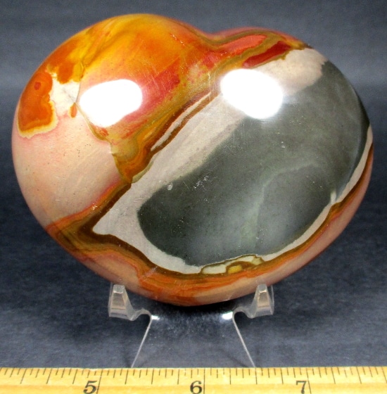 This is a very pretty gemstone heart carved from Poly Chrome Jasper.  It has a gorgeous color scheme enhancing the overall beauty.  The lovely heart measures 3 3/8″ wide x 2 3/4″ tall x 1 3/4″ thick and has a nice polish.  Very beautiful!