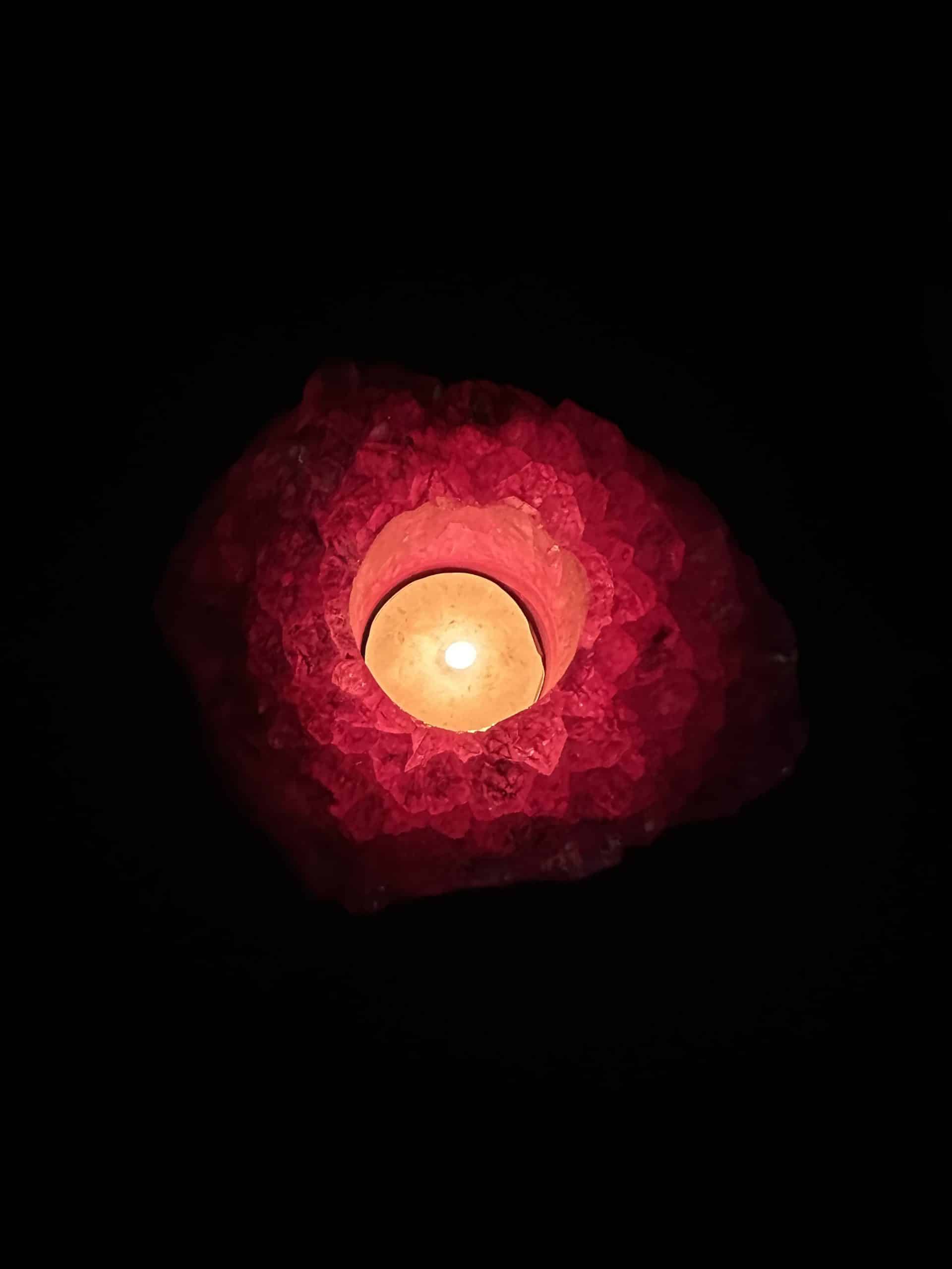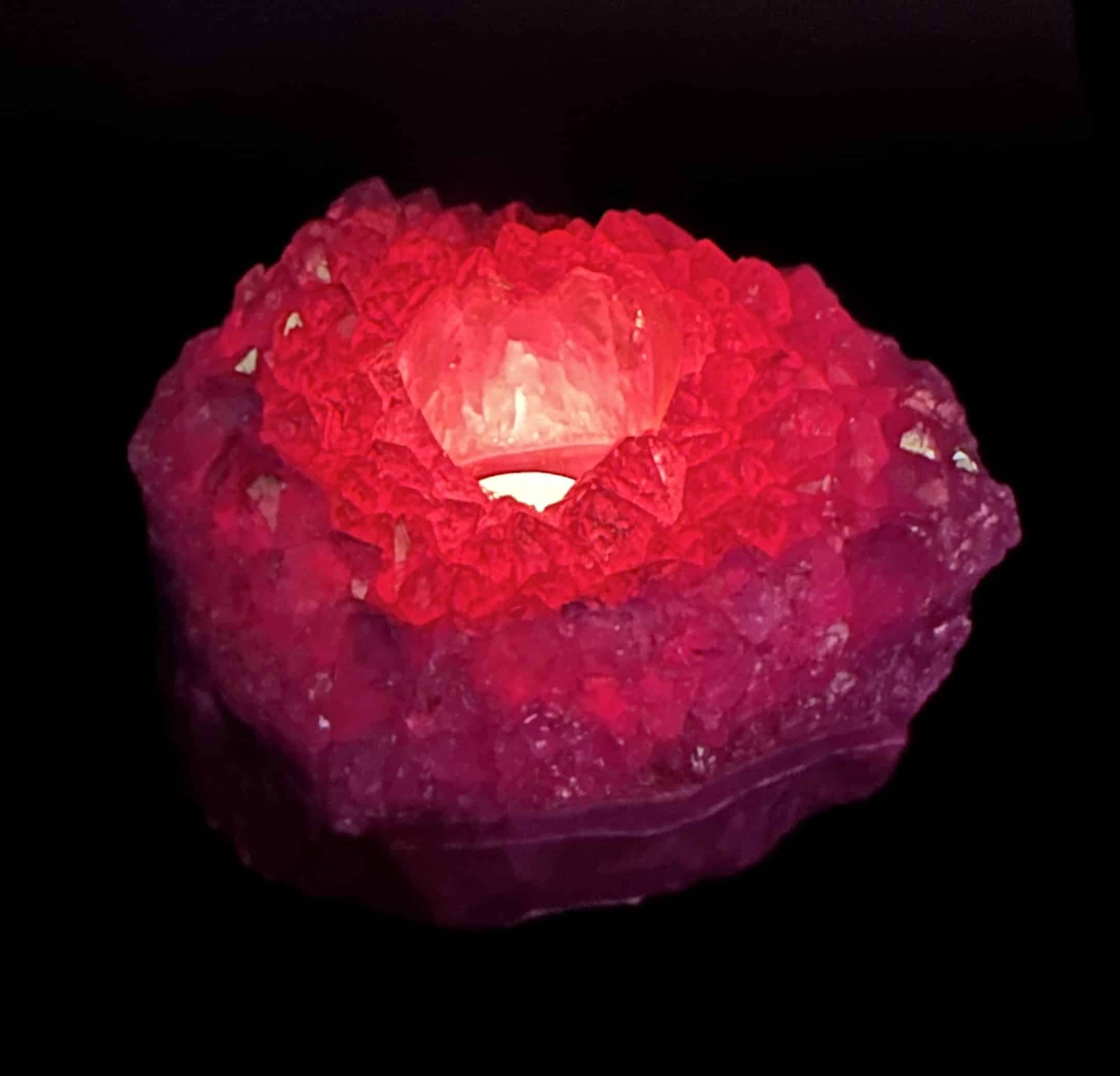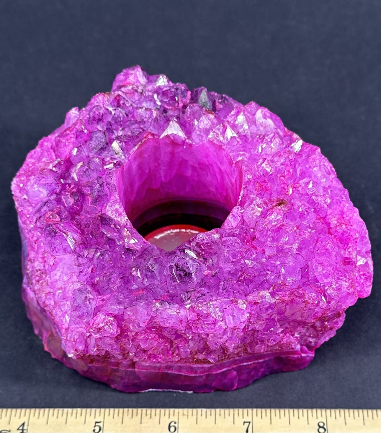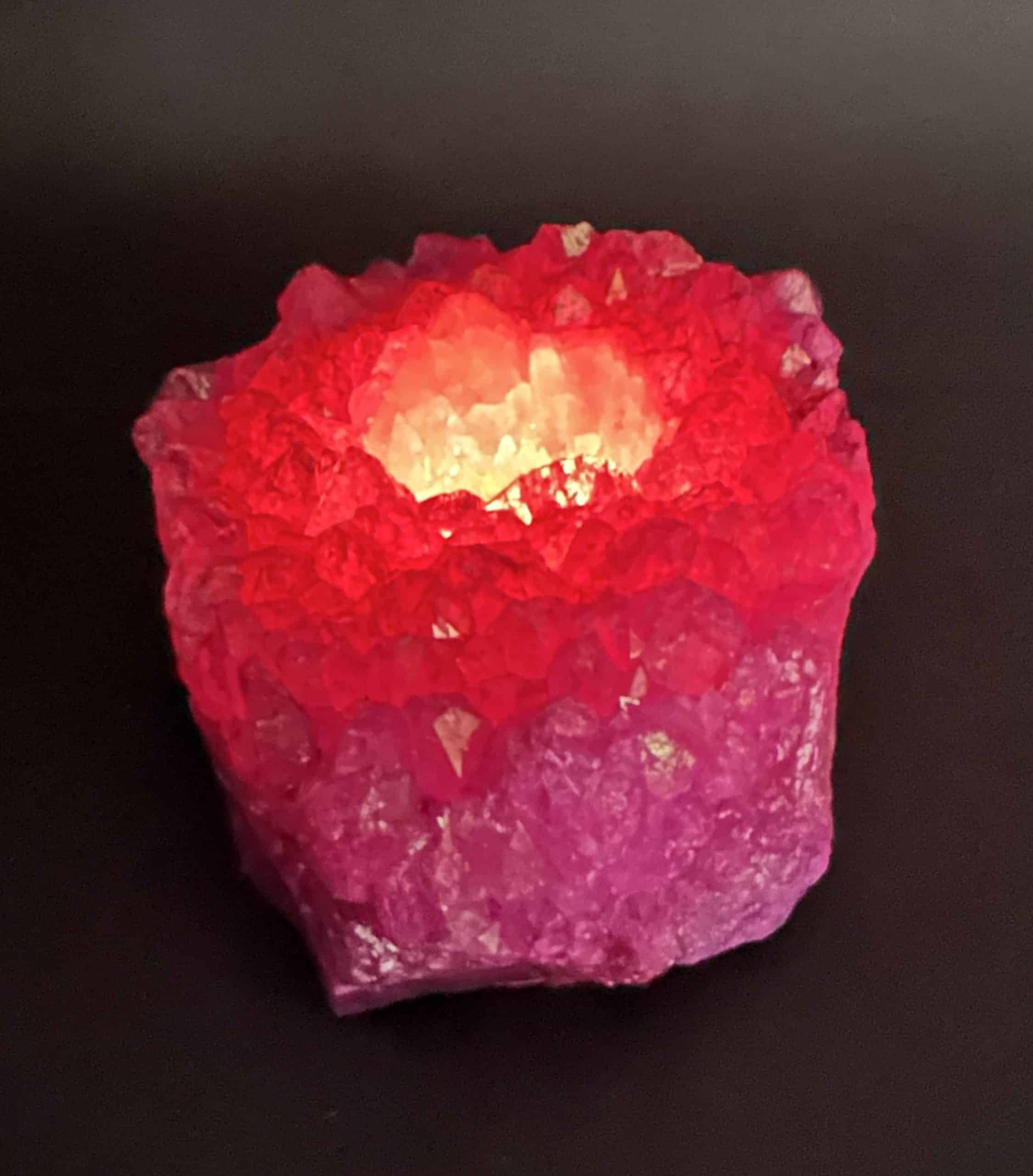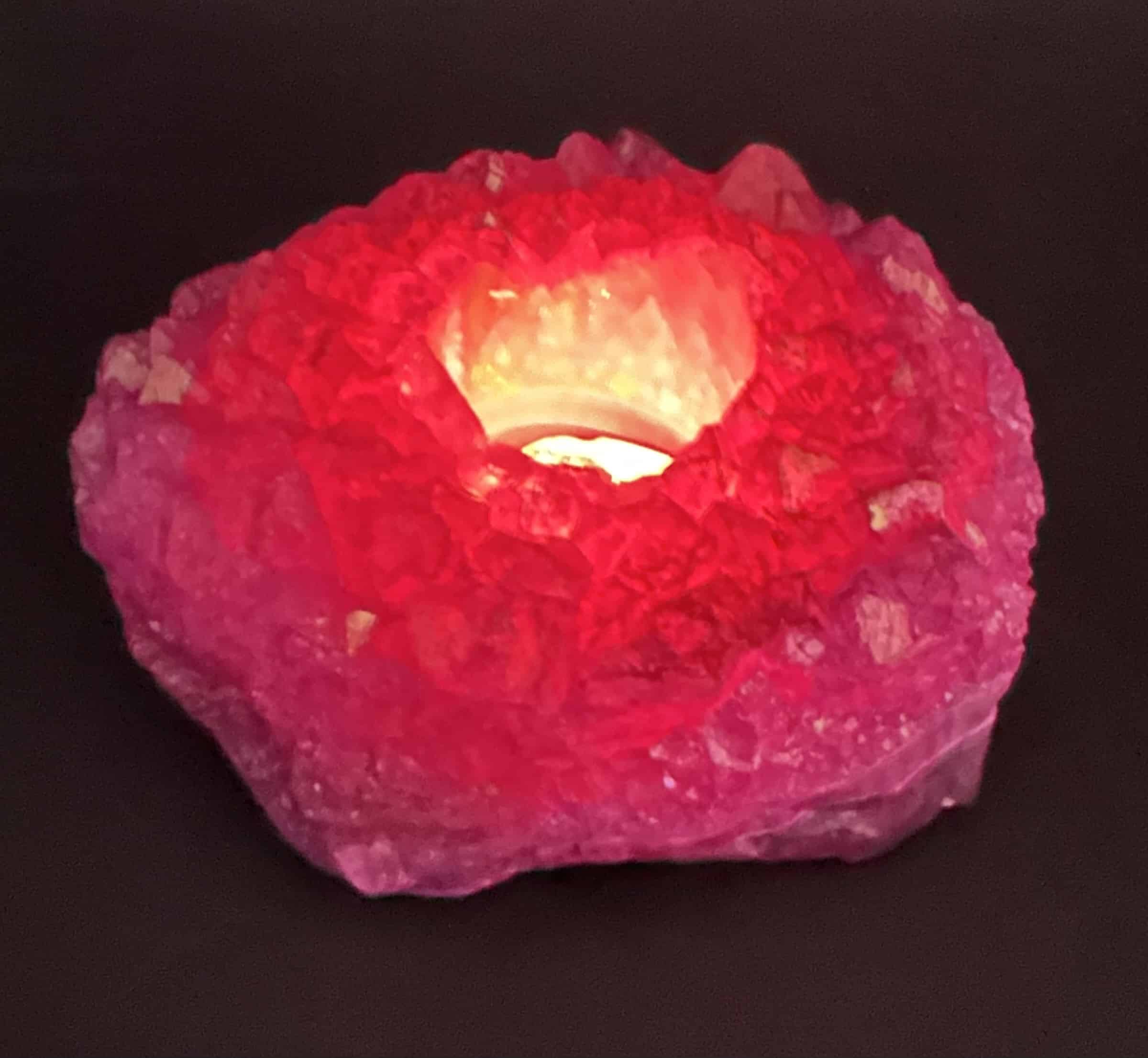 LT106: Crackle Quartz Candle Holder. Selection: Tea light, candle holder. Enhanced Pink .