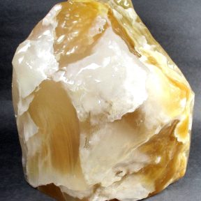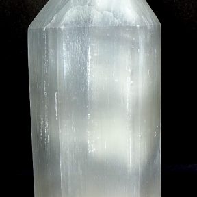 Selenite is a Crystalline variety of Gypsum.  It is often transparent and colorless.  If the Selenite Crystals show translucency, opacity and/or color, it is caused by the presence of other minerals and many be “druzy”.  Selenite often appears to have a “cat’s eye” appearance especially with the polished variety.  It will often magnify images when the translucency is very clear.