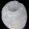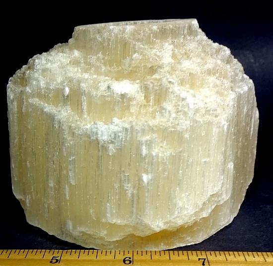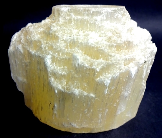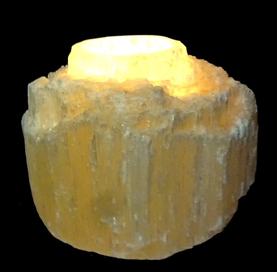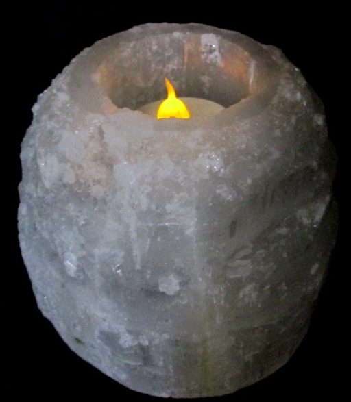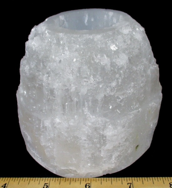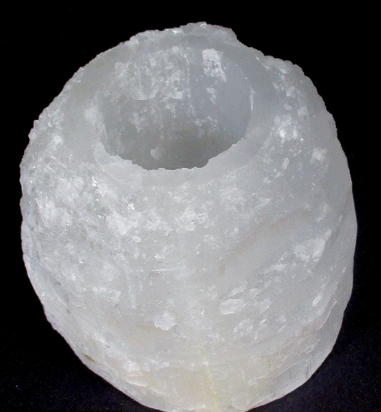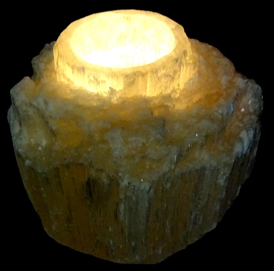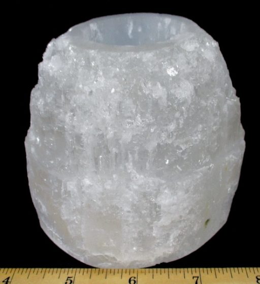 Selenite is a Crystalline variety of Gypsum. It is often transparent and colorless. If the Selenite Crystals show translucency, opacity and/or color, it is caused by the presence of other minerals, and many be “druzy”. Selenite often appears to have a “cat’s eye” appearance especially with the polished variety. It will often magnify images when the translucency is very clear.