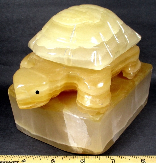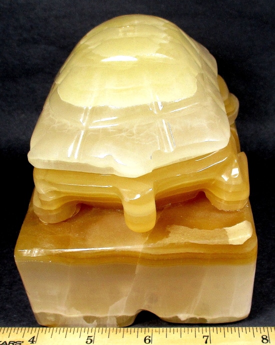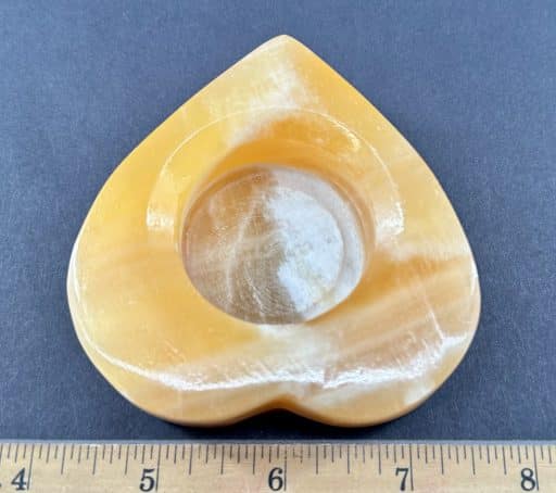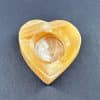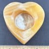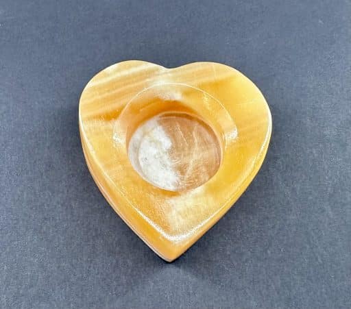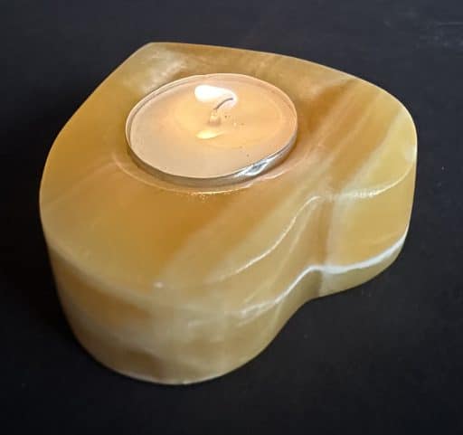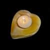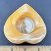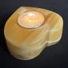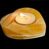 LT207: Orange Calcite Candle Holder. Selection – Carved and polished heart. Tea light candle compatible. This piece provides a warm glow in dark settings, as well as a bright and cheery daylight appearance.