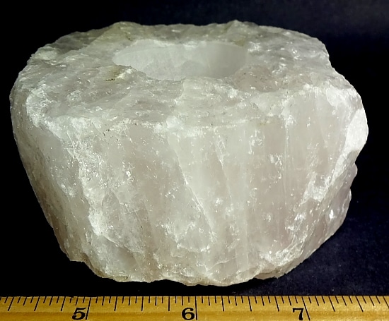 Rose Quartz is a member of the Quartz family that exhibits a pale Pink to Rose Red hue. The color is usually due to the trace amounts of Titanium, Iron or Manganese in the mass material. Some Rose Quartz contains microscopic Rutile needles which produce an asterism in transmitted light. An all time favorite at the Rock Shop.