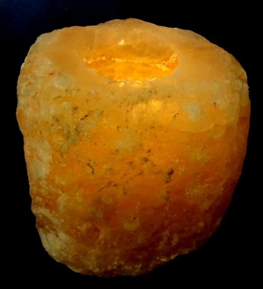 This is a pretty Peach colored Tea Light Candle Holder made from Salt Crystal.  This light measures 4 1/4″ x 3 3/8″ x 4 3/8″ tall.  The Salt Crystal Candle Holder comes from the Himalayan Mountains in Pakistan.