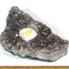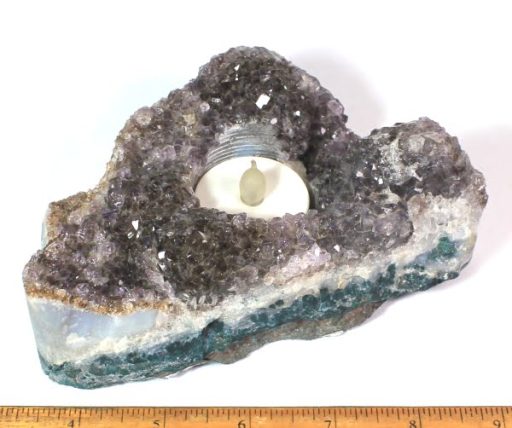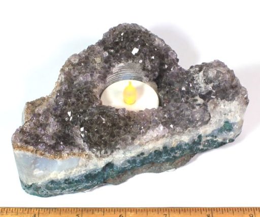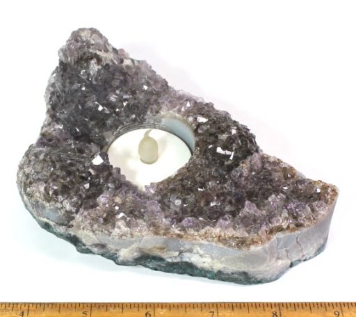 Amethyst is a purple variety of Quartz often used as an ornament. Upon exposure to heat, Amethyst generally becomes yellow, which some refer to as Citrine or “burnt” Amethyst. It occurs in color from a light, slightly pinkish violet to a deep grape purple. It is widely distributed as a mineral, but fine, clear specimens that are suitable for cutting as ornamental stones.