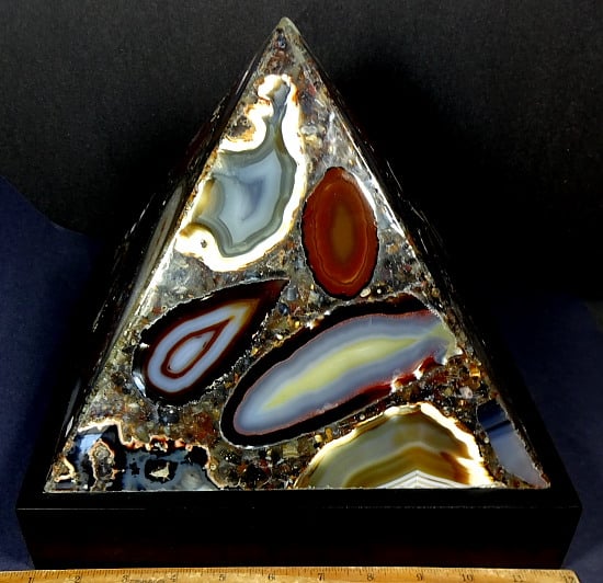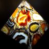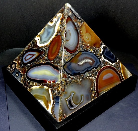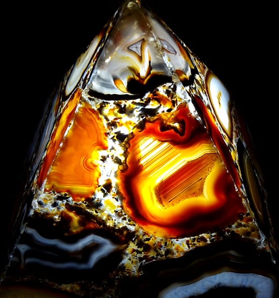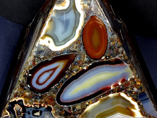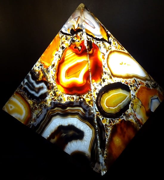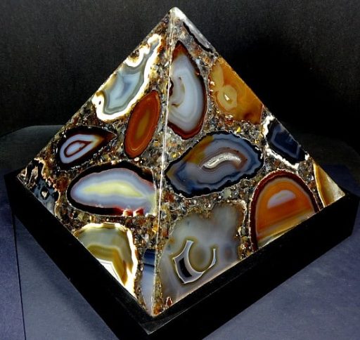 Agates mostly occur as nodules in volcanic rocks or waters containing silica in solution possibly derived from the decomposition of silicates in the lava. The siliceous matter is deposited in regular layers resulting in the banded or striped formation.