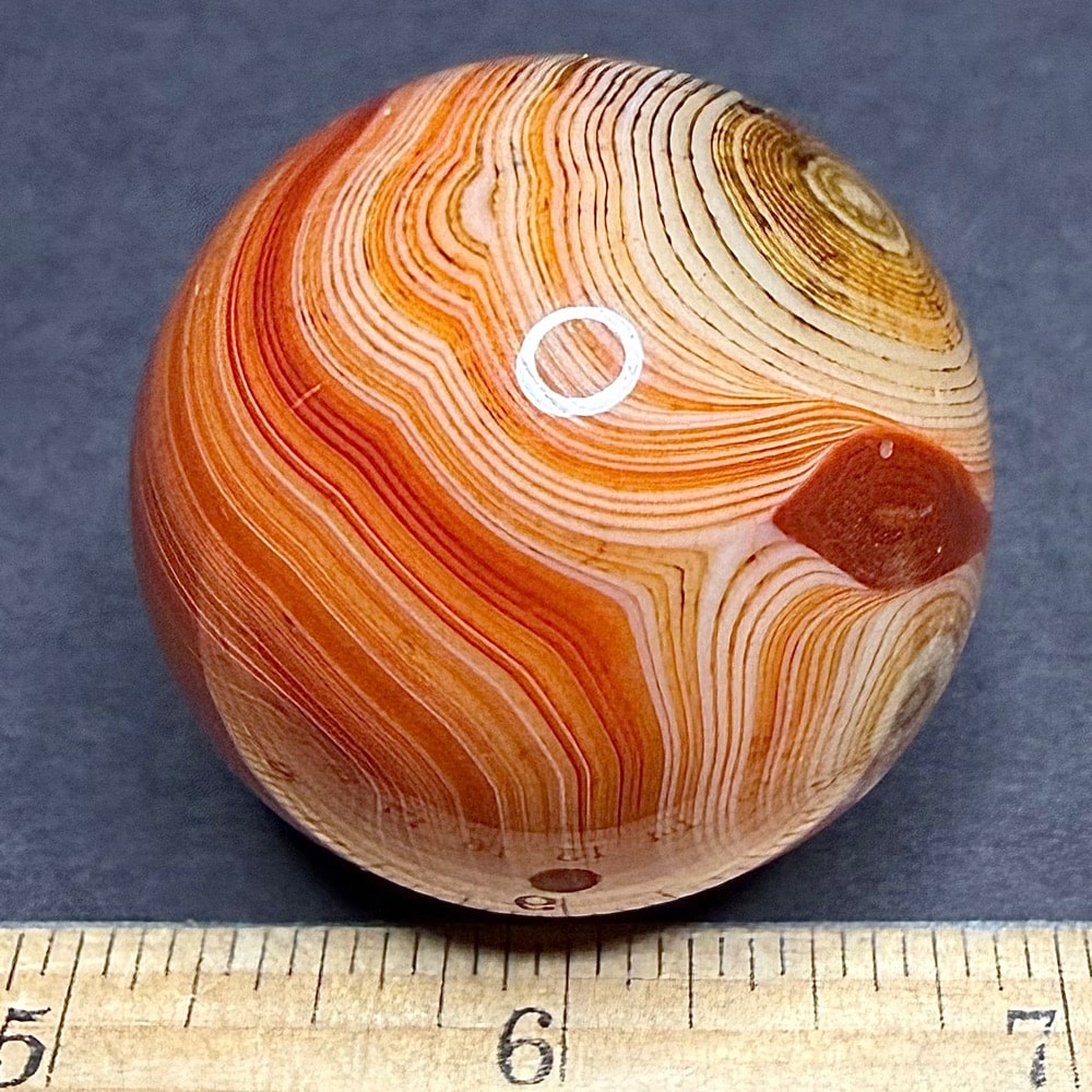 Sardonyx is a form of Chalcedony. Chalcedony is a cryptocrystalline form of silica, composed of very fine intergrowths of the minerals quartz and moganite. Chalcedony has a waxy luster and may be semitransparent or translucent. It can assume a wide range of colors, but those most commonly seen are white to gray, grayish-blue or a shade of brown ranging from pale to nearly black.
