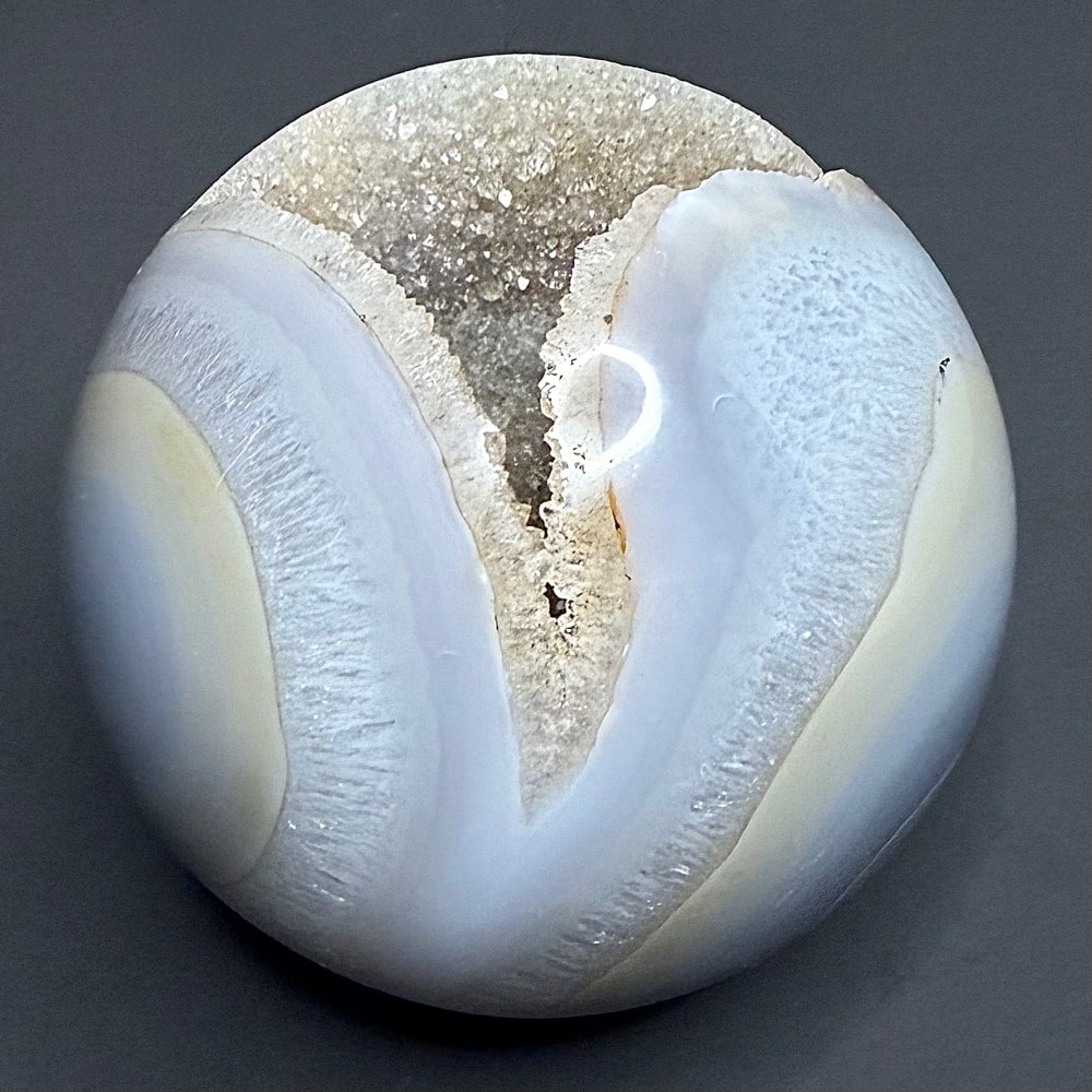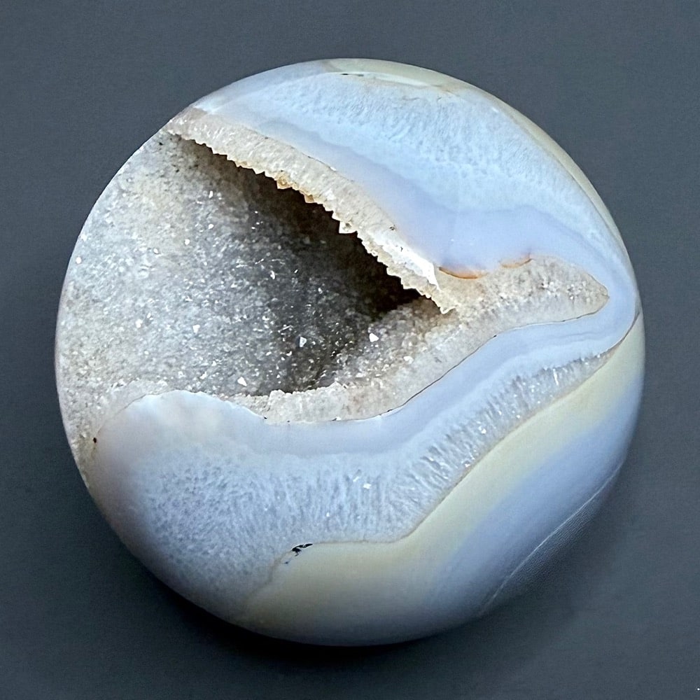Agates mostly occur as nodules in volcanic rocks or waters containing silica in solution possibly derived from the decomposition of silicates in the lava. The siliceous matter is deposited in regular layers resulting in the banded or striped formation.