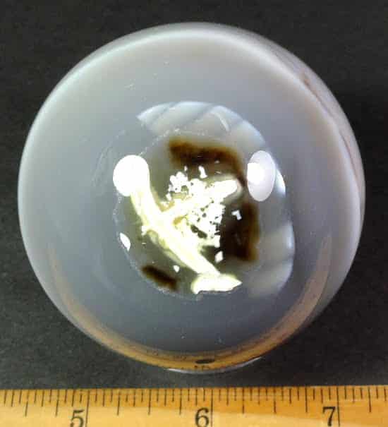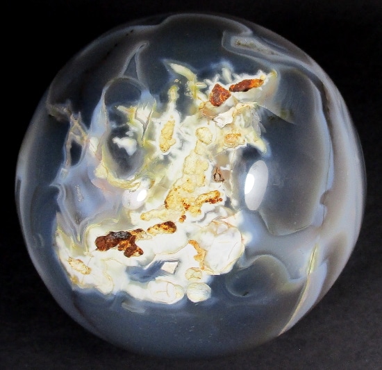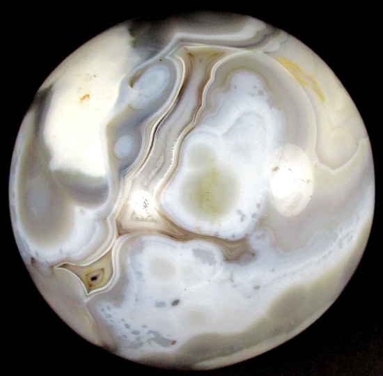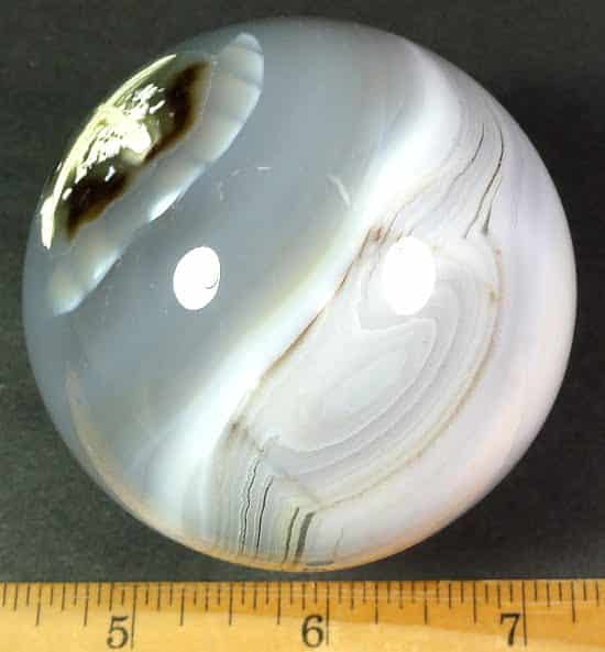Agates mostly occur as nodules in volcanic rocks or waters containing silica in solution possibly derived from the decomposition of silicates in the lava.  The siliceous matter is deposited in regular layers resulting in the banded or striped formation.