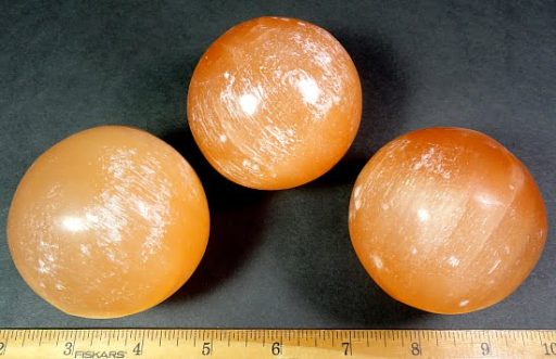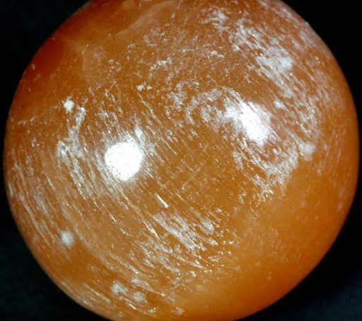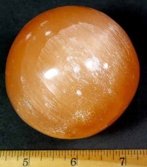 Here’s a new item, a nice Peach Selenite sphere. It has a good polish and pretty Peach color. It measures approximately 2 7/8″. A nice addition to any collection.
