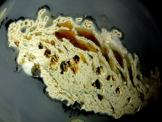 Agates mostly occur as nodules in volcanic rocks or waters containing silica in solution possibly derived from the decomposition of silicates in the lava.  The siliceous matter is deposited in regular layers resulting in the banded or striped formation.