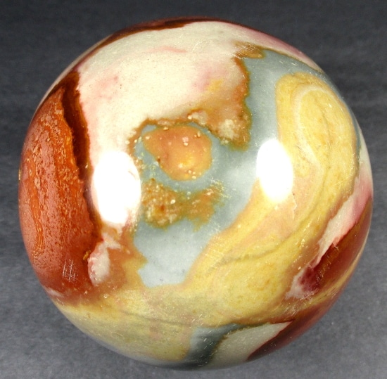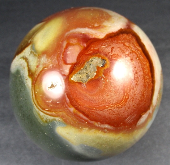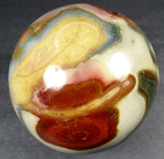 Jasper, or spotted stone, is an opaque, impure variety of Quartz that is usually red, yellow or brown in color. Some Jaspers simultaneously exhibit several variants such as banding, flow patterns, dendrites or color variations. This results in what appears to be scenes or images in a cut section of the Jasper.