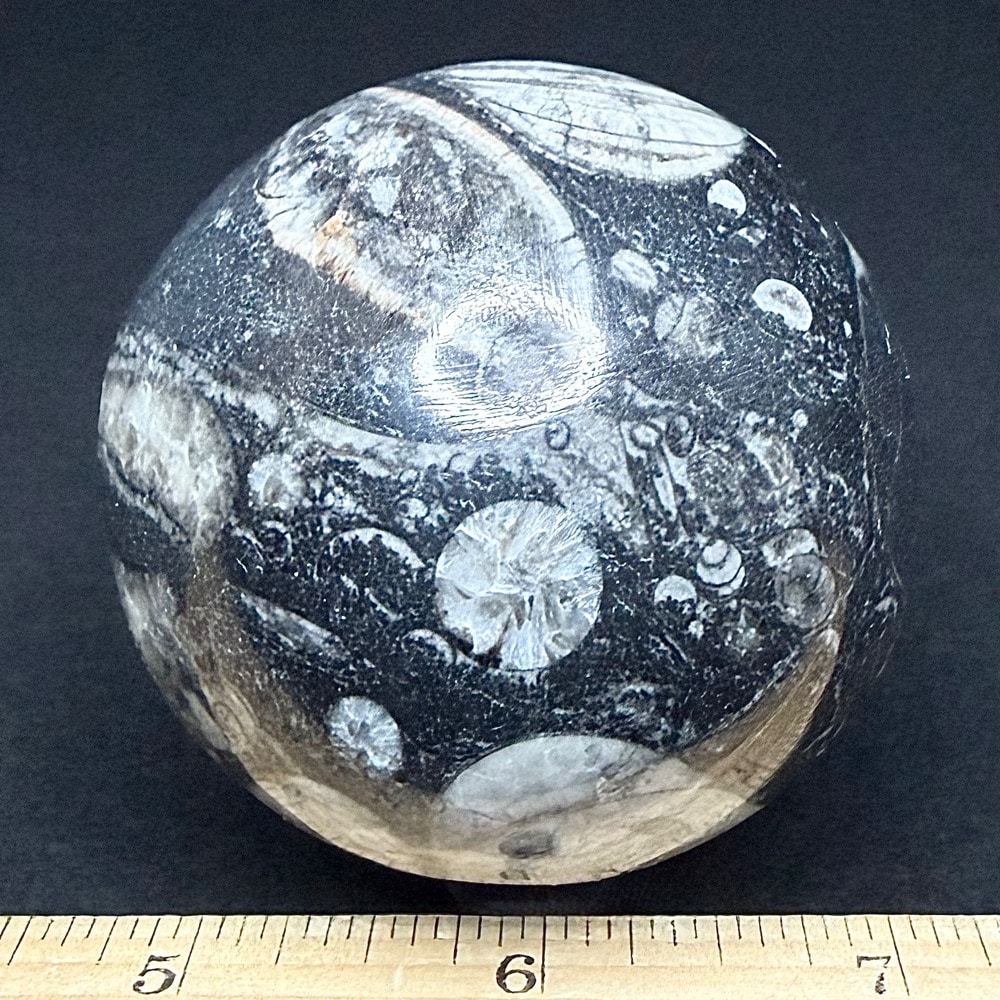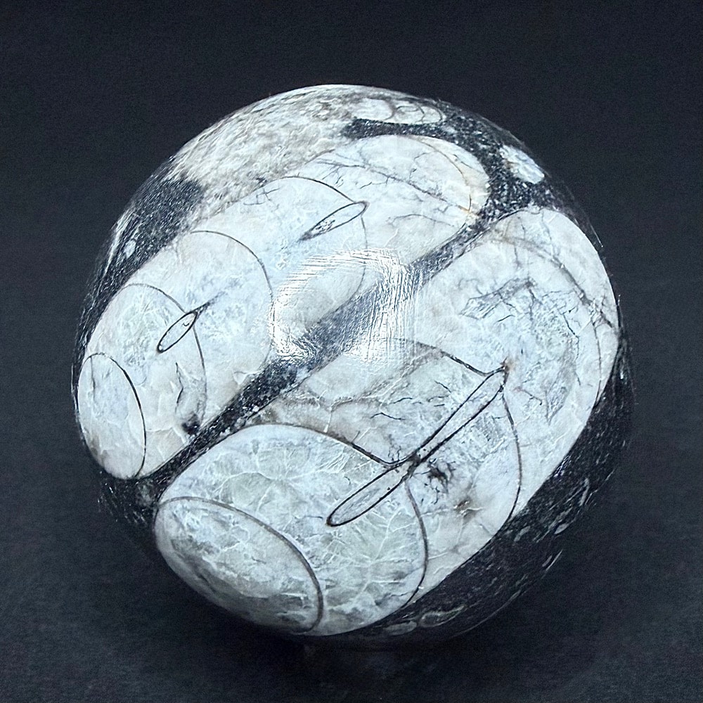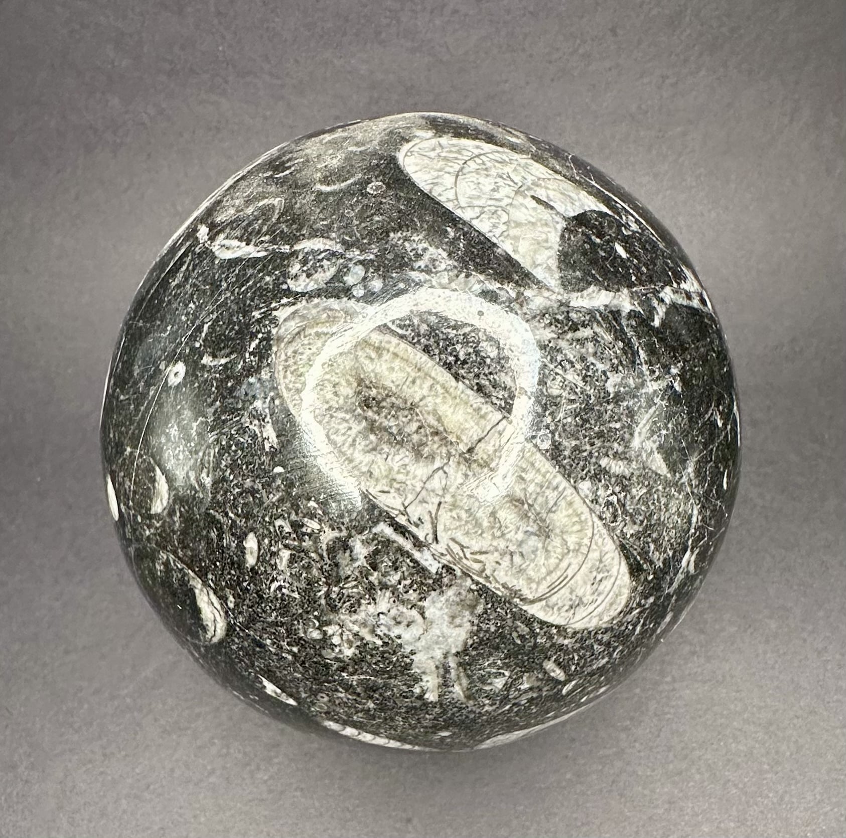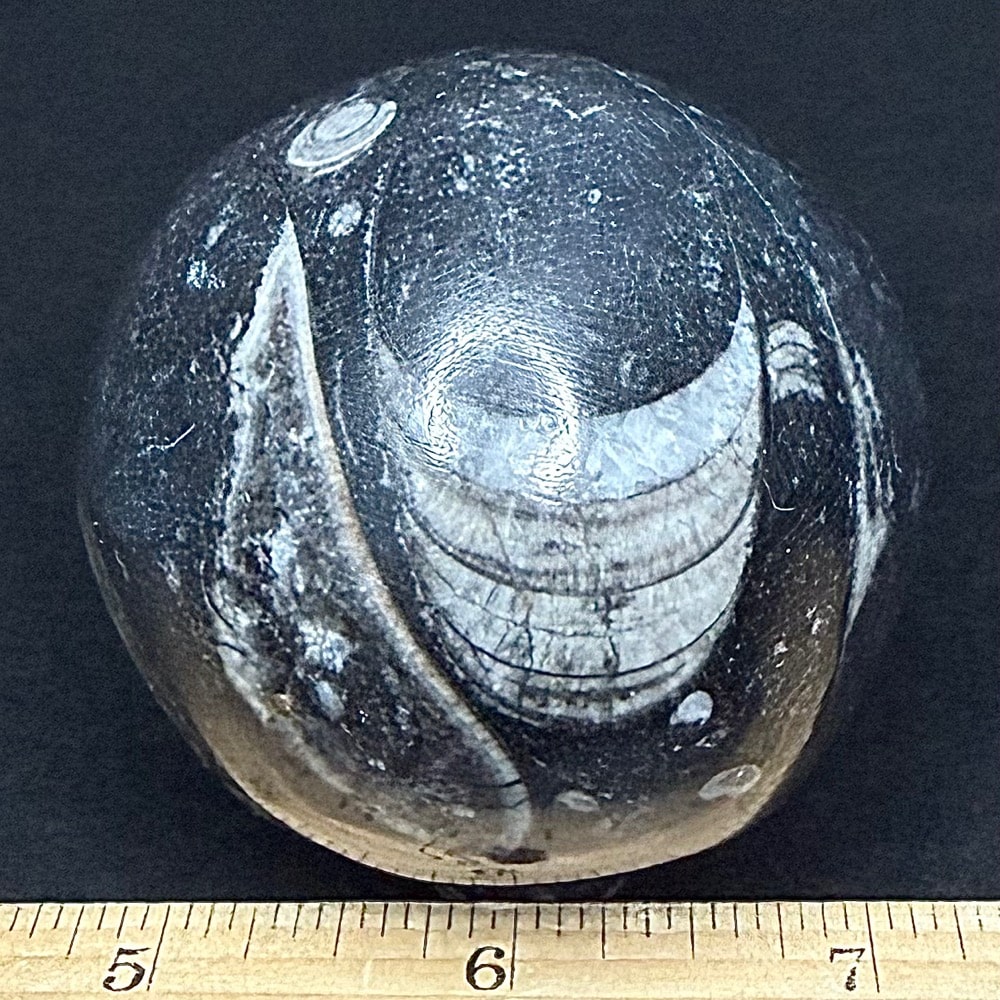 Orthoceras is a genus of extinct Nautiloid Cephalopod. These fossils are common and have a global distribution which occur in any marine rock, especially Limestone. These are slender, elongated shells with the middle of the body chamber transversely constricted and a sub-central orthochoanitic siphuncle. The surface is ornamented by a network of fine lirae or fine lines/ridges.